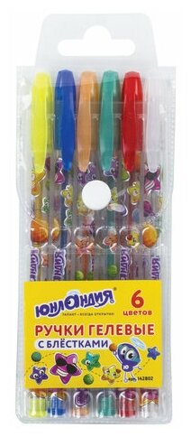 СохранитьРучки гелевые цветные Юнландия, Набор 6 шт., Ассорти Блестки, корпус с печатью, узел 0,7 мм, линия письма 0,5 мм интересное: