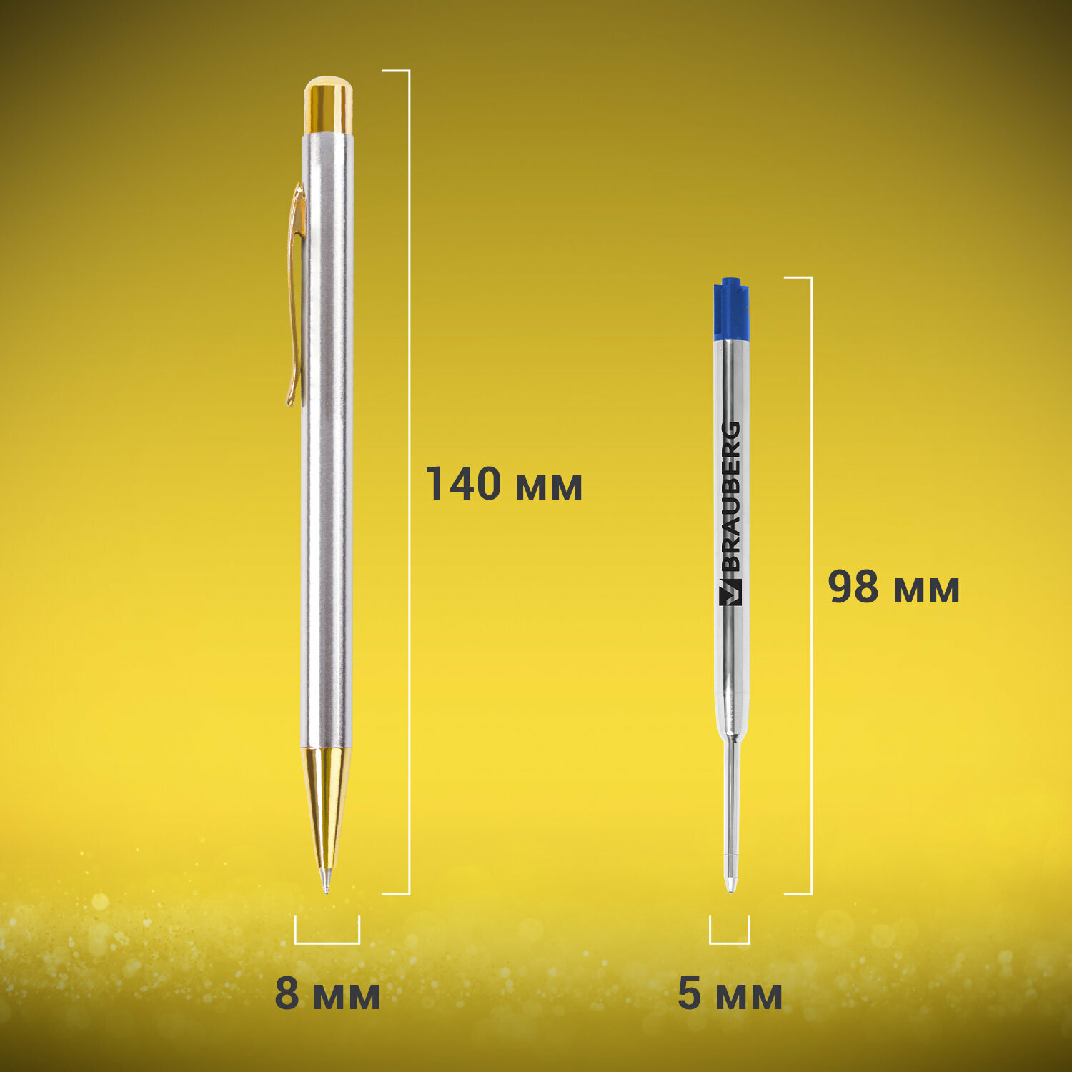 Ручка шариковая подарочная мужчине и женщине Brauberg Maestro, Синяя, корпус серебристый с золотистым, линия письма 0,5 мм, 143468