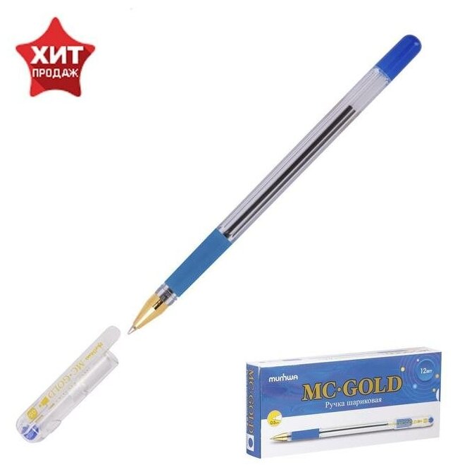 Ручка шариковая MC Gold, резиновый грип, чернила синие, узел 1.0 мм, 12 шт.