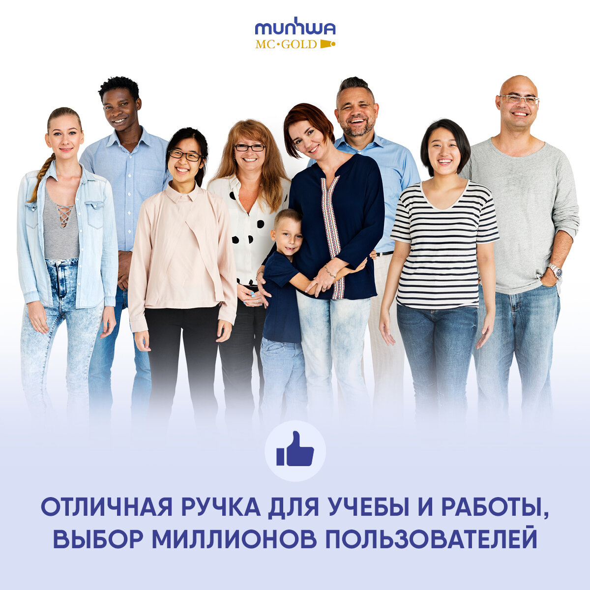 Ручка шариковая MunHwa "MC Gold" синяя, 0,5мм, грип, штрих-код, 12 шт. в упаковке