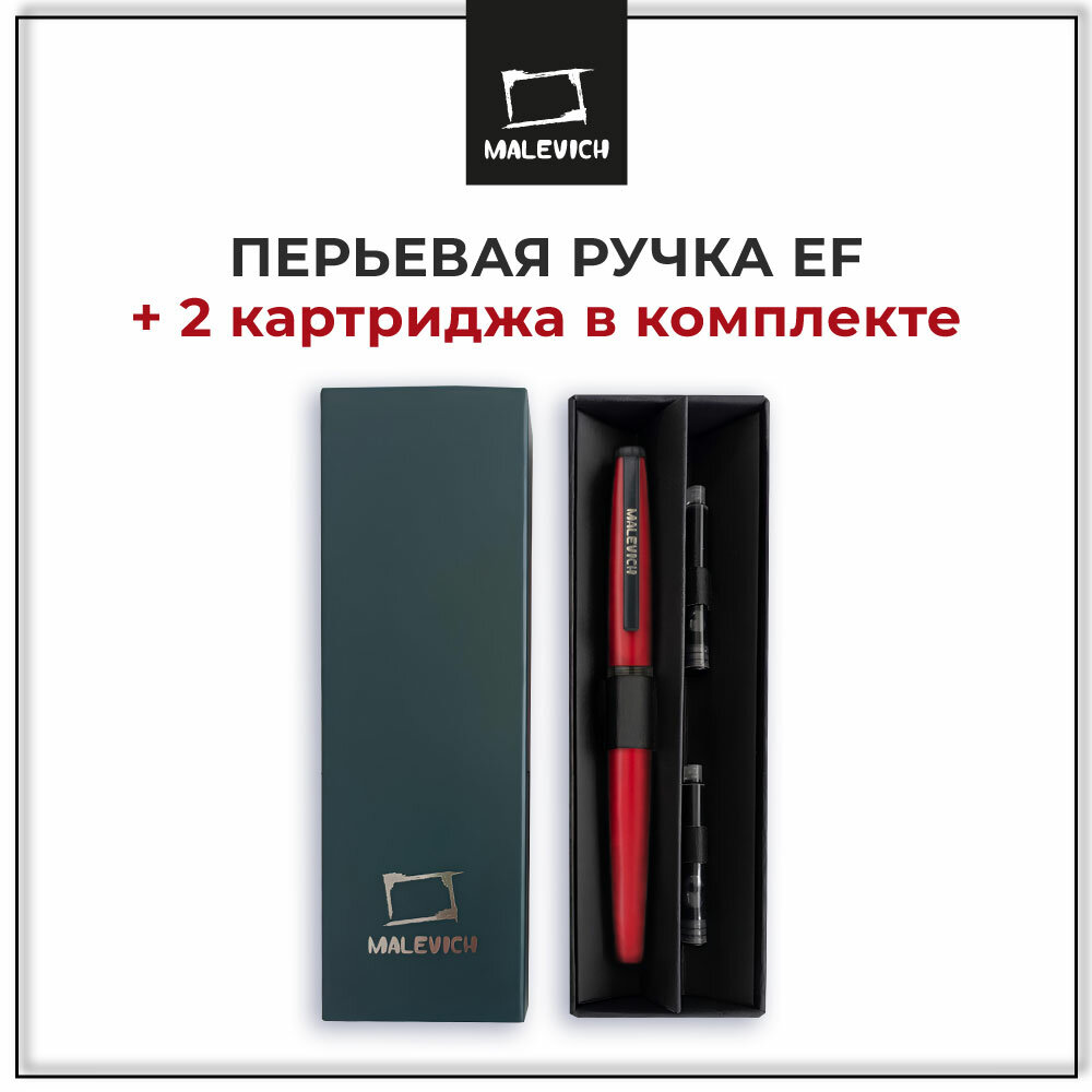 Купить Ручка перьевая Малевичъ с конвертером, перо EF 0,4 мм, подарочный набор с двумя картриджами (индиго, черный), цвет корпуса: красная помада