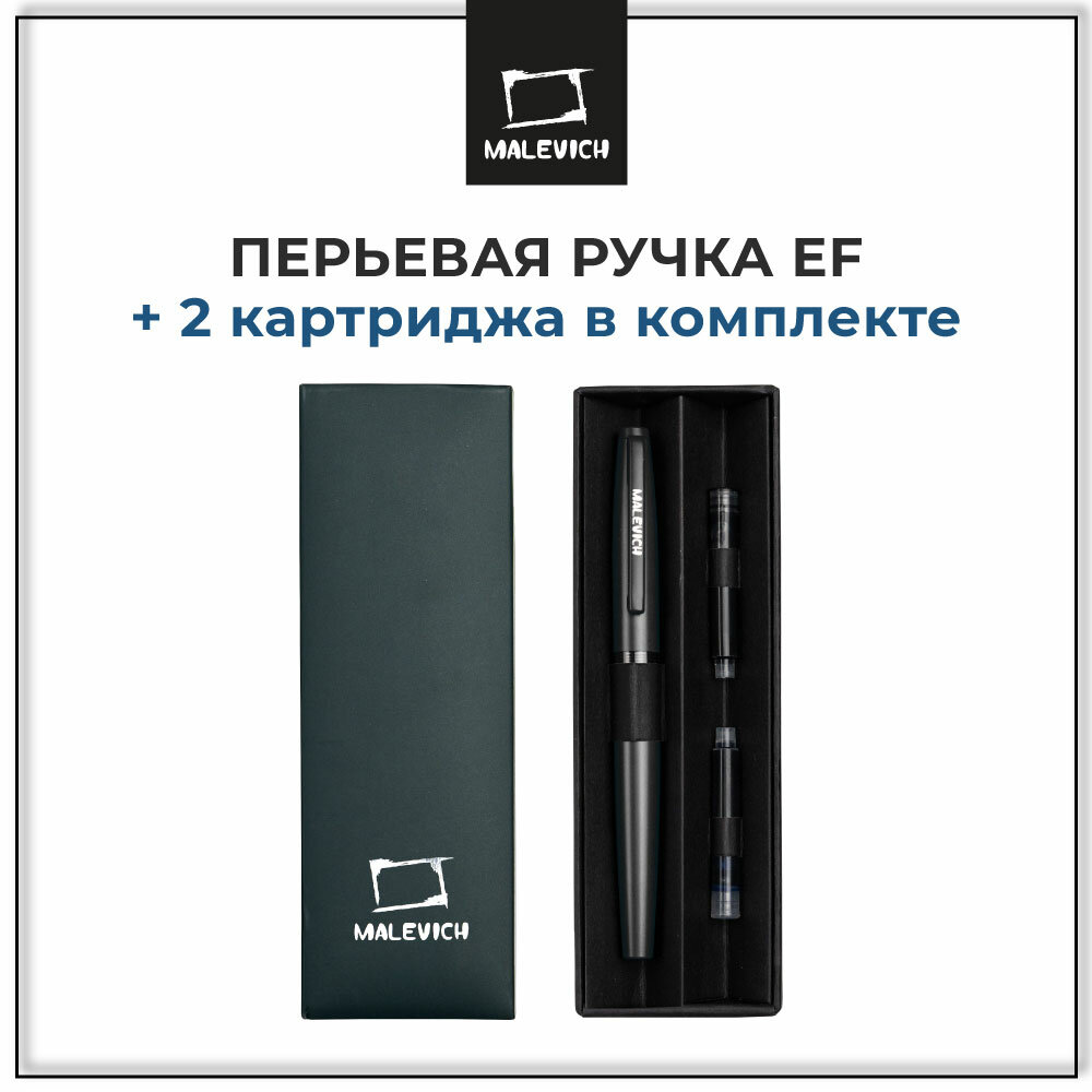 Ручка перьевая Малевичъ с конвертером EF, 0,4мм, набор с 2-мя картриджами
