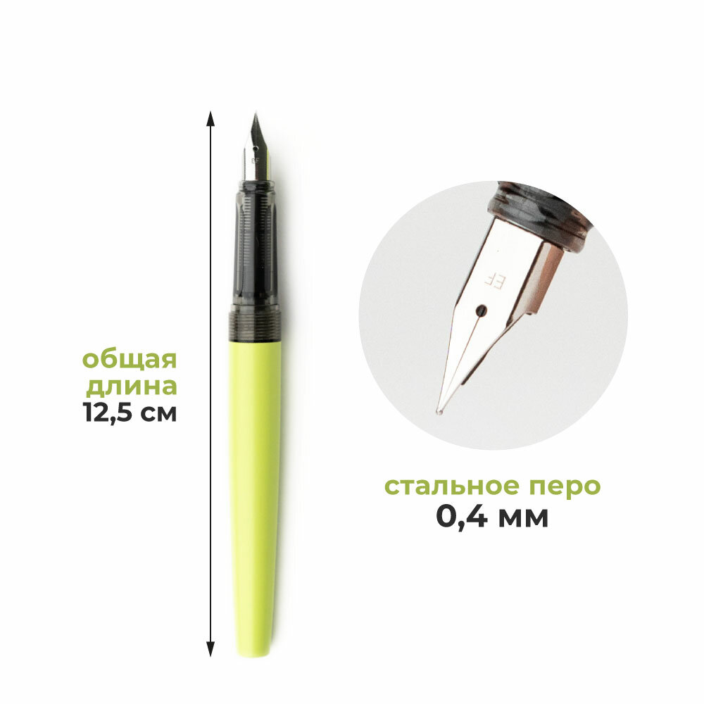 Ручка перьевая с конвертером, перо EF 0,4 мм, 2 картриджа (индиго, черный): цедра лимона
