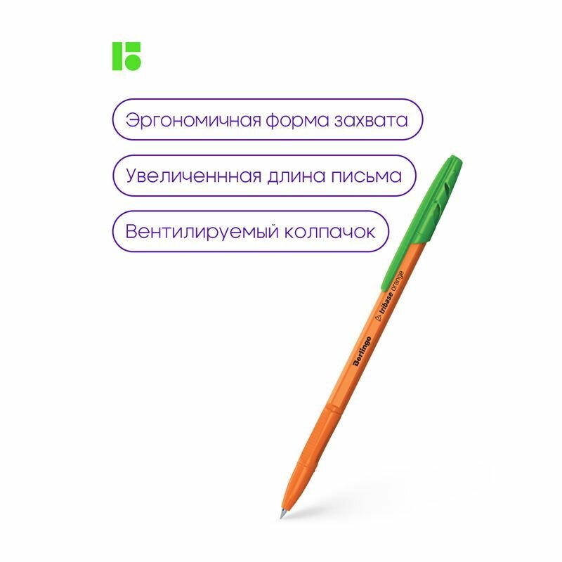Купить Ручка шариковая Berlingo "Tribase Orange" зеленая, 0,7мм, 50 штук