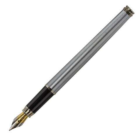 Купить Ручка бизнес-класса перьевая Brauberg Ballet, синяя, корпус серебристый с хромированными деталями, линия письма 0,25 мм (143481)