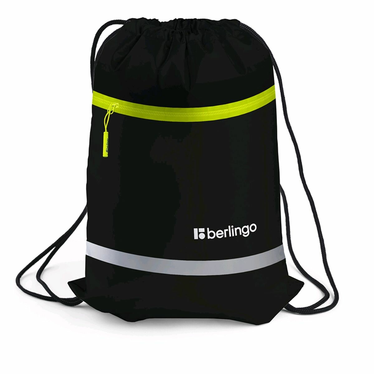 Купить Мешок для обуви 1 отделение Berlingo "Basic yellow", 360*460мм, светоотражающая лента, карман на молнии