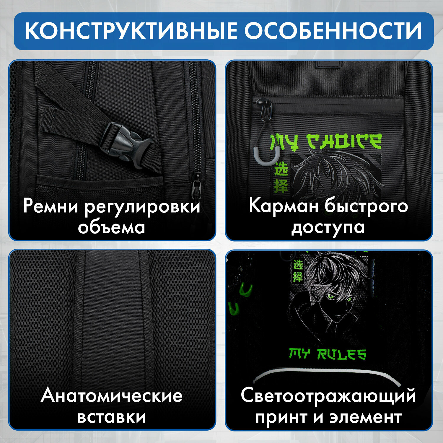 Рюкзак Brauberg Content универсальный, 3 отделения, светоотражающий принт, Anime choice, 47х33х18см,272566