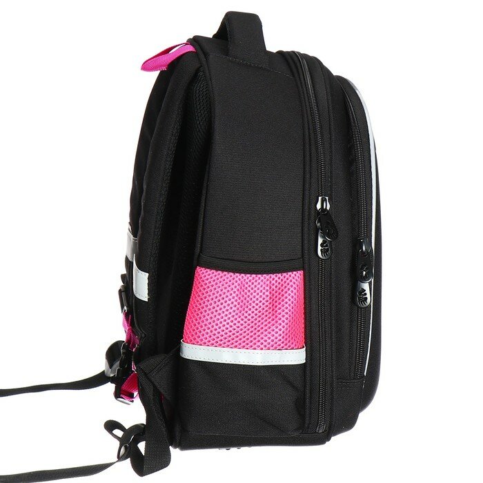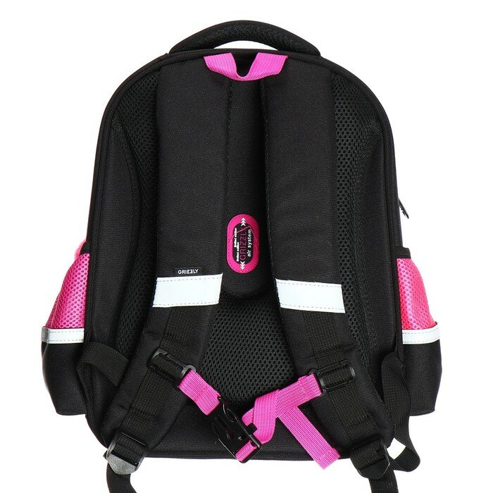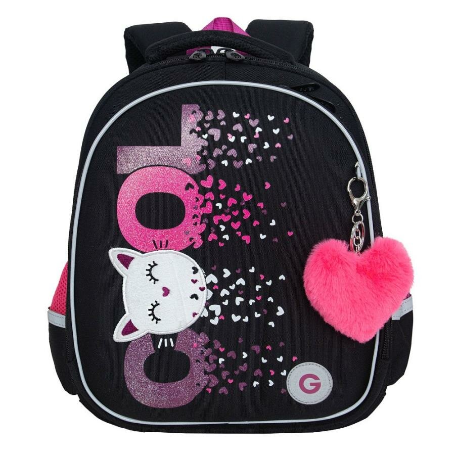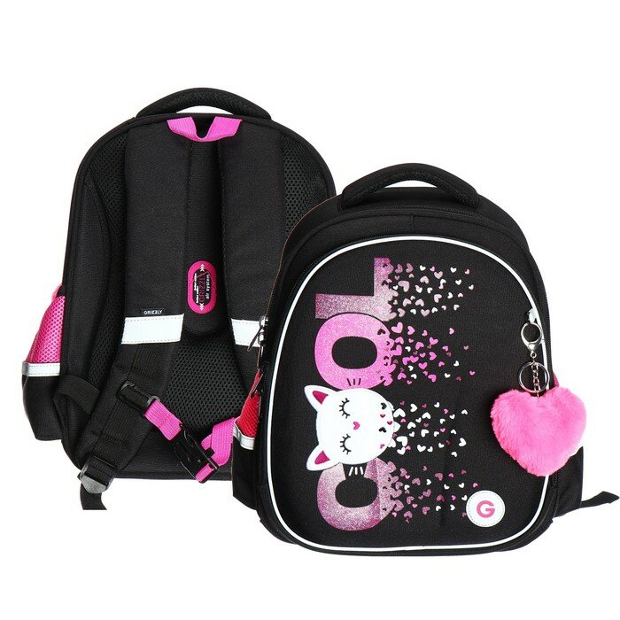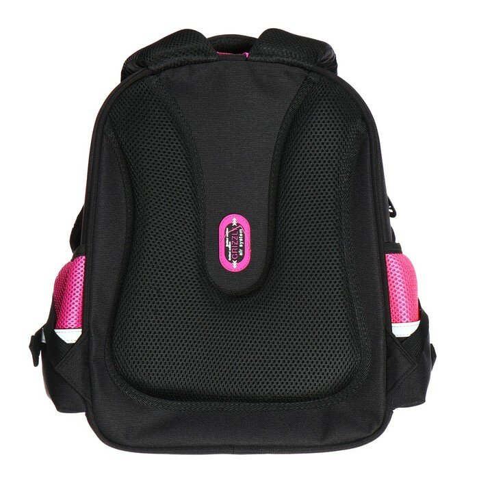 Купить Ранец каркасный, 36 х 28 х 20 см, Grizzly, из плюша, + брелок, чёрный/розовый