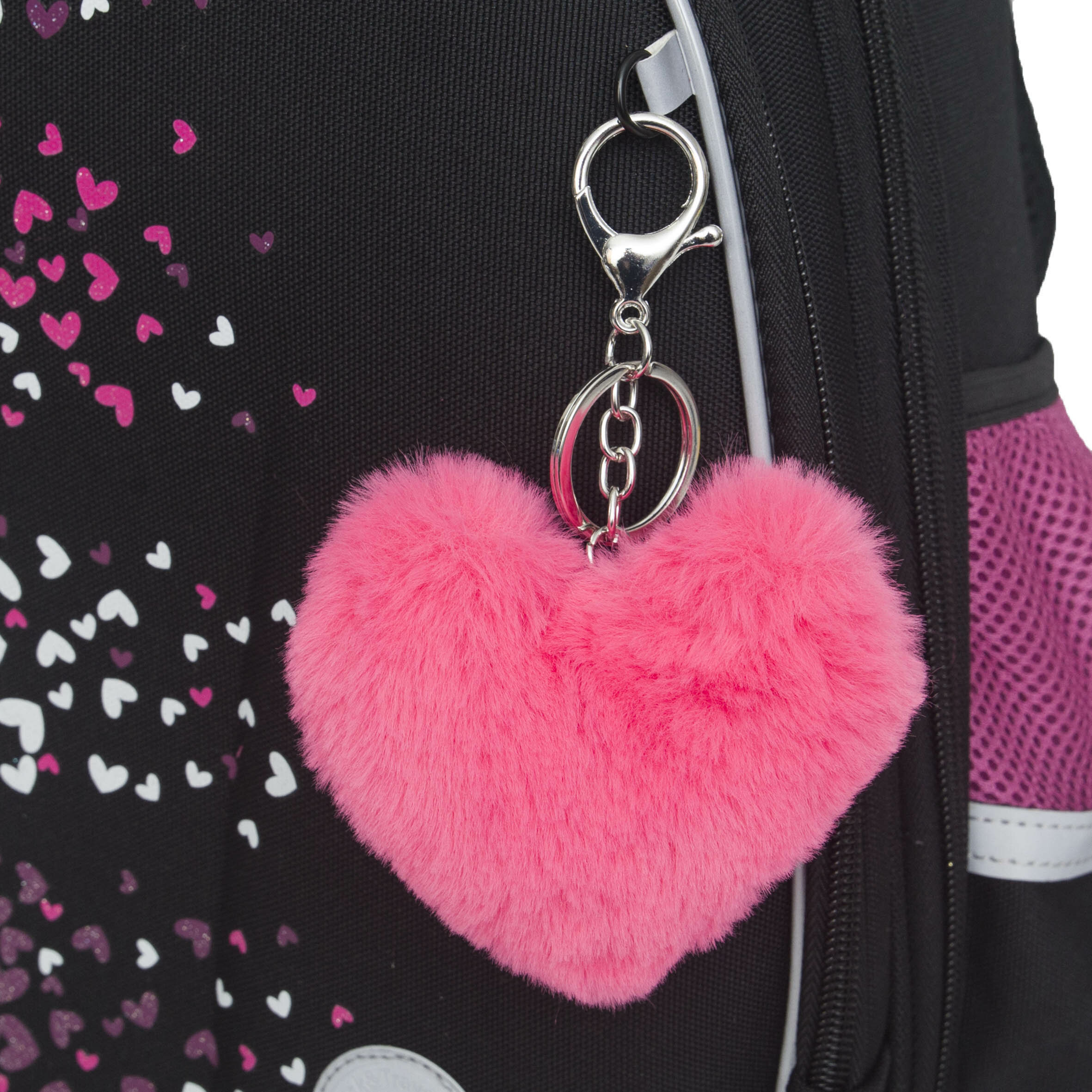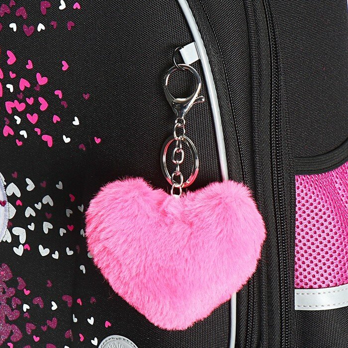 СохранитьРанец каркасный, 36 х 28 х 20 см, Grizzly, из плюша, + брелок, чёрный/розовый интересное: