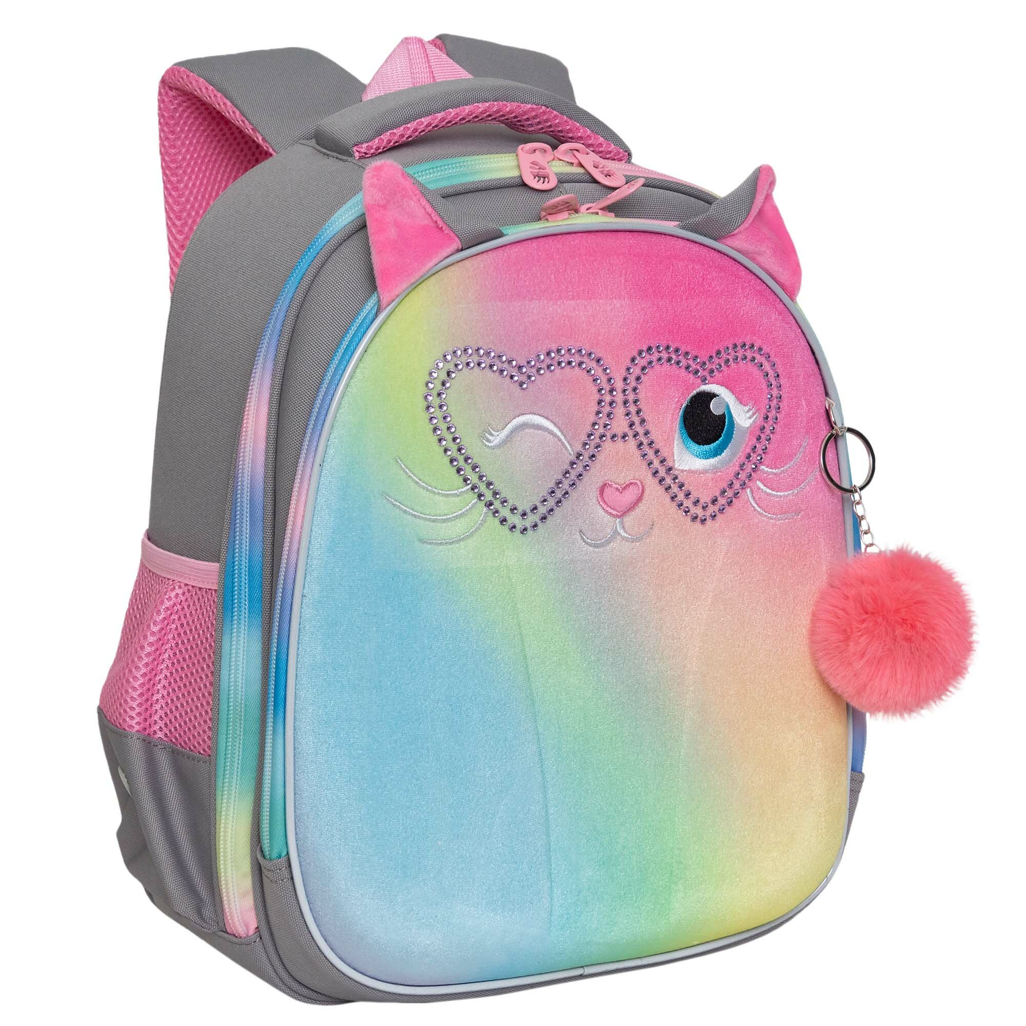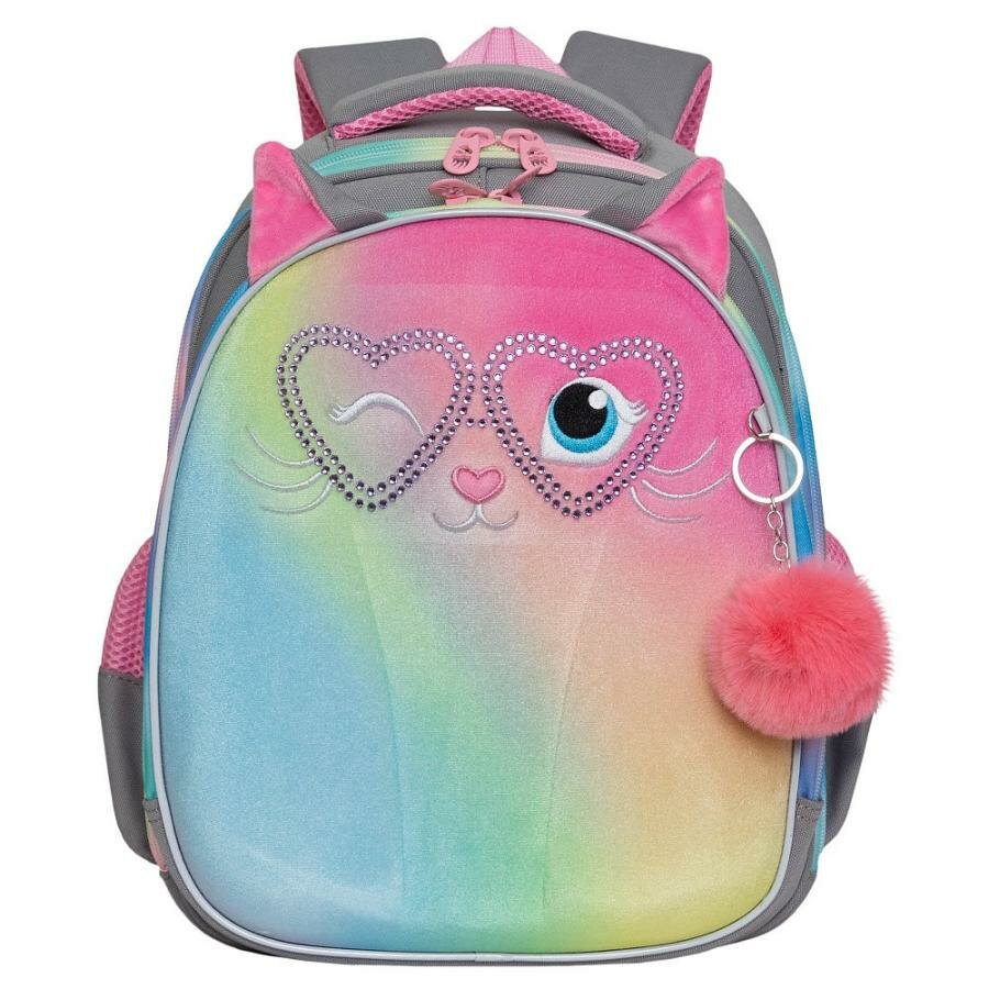 Ранец Grizzly анатомическая спинка, c брелоком, Rainbow Cat, 36х28х20 см .
