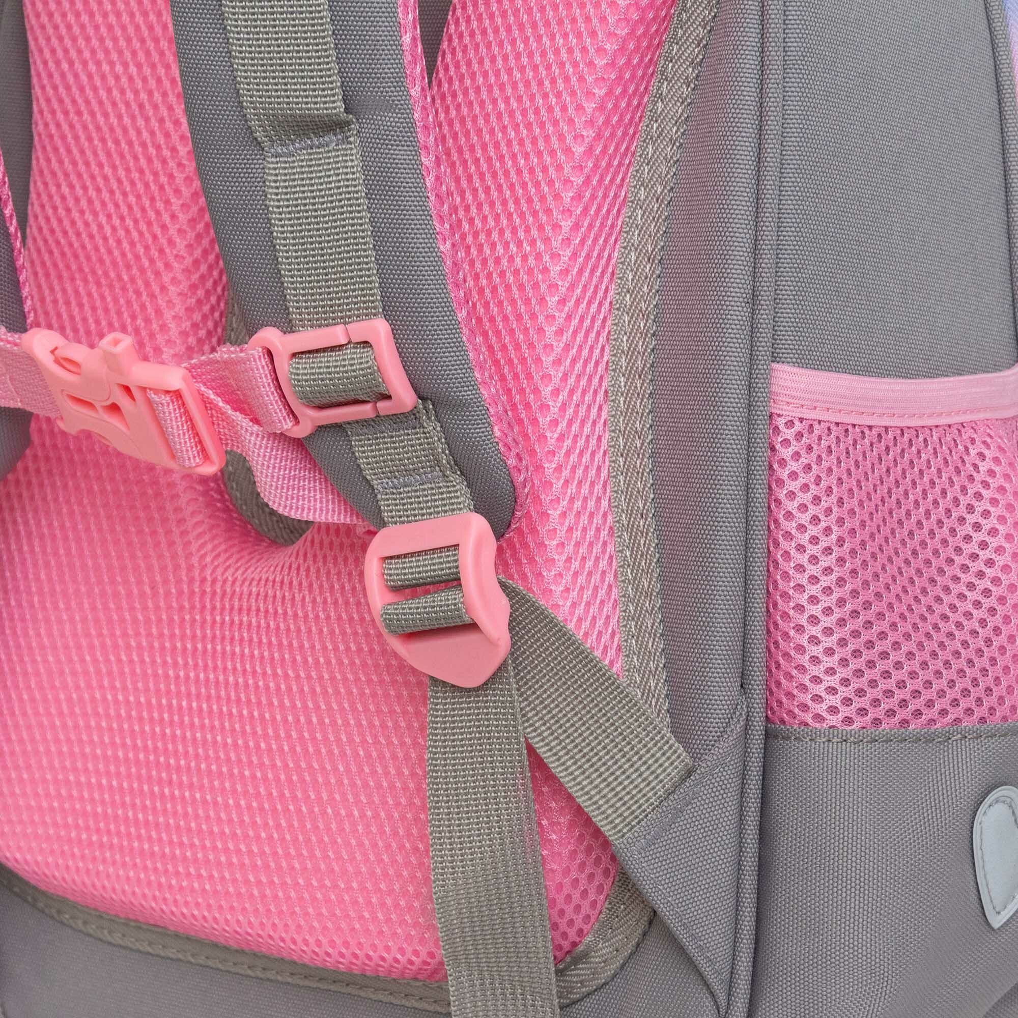 Ранец школьный формованный с анатомической спинкой с брелком, для девочки (серый-розовый)