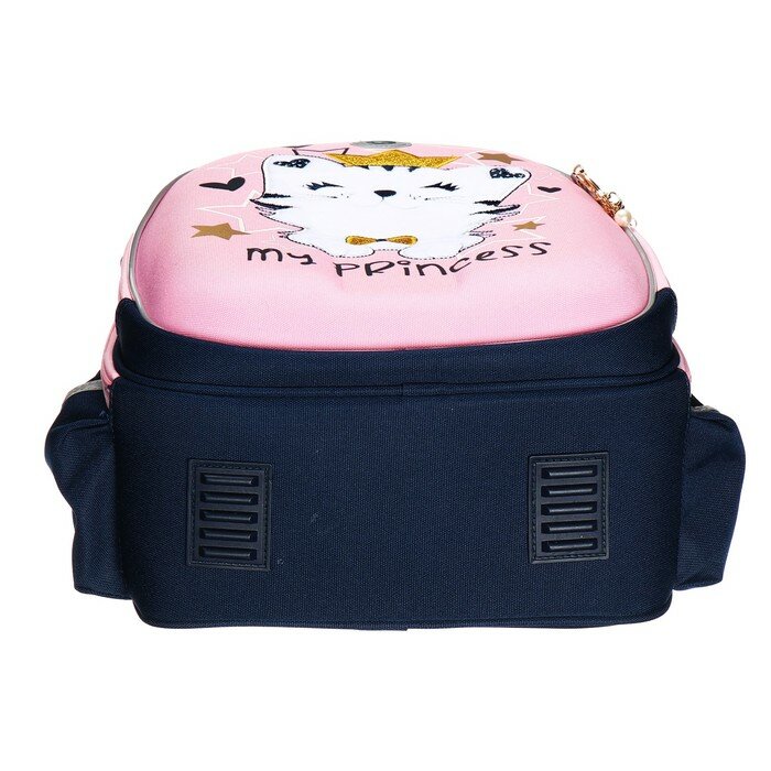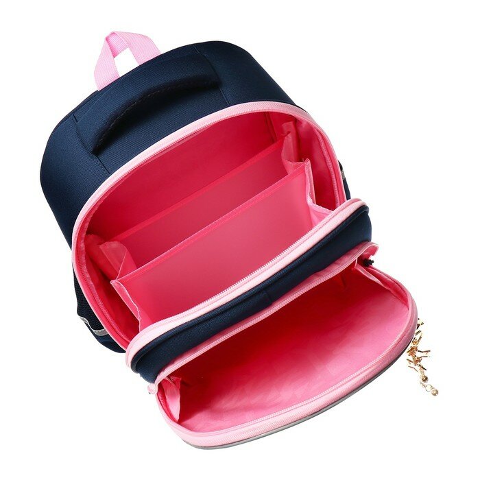 Ранец каркасный, 36 x 28 x 20 см, из плюша, + брелок, тёмно-синий/розовый