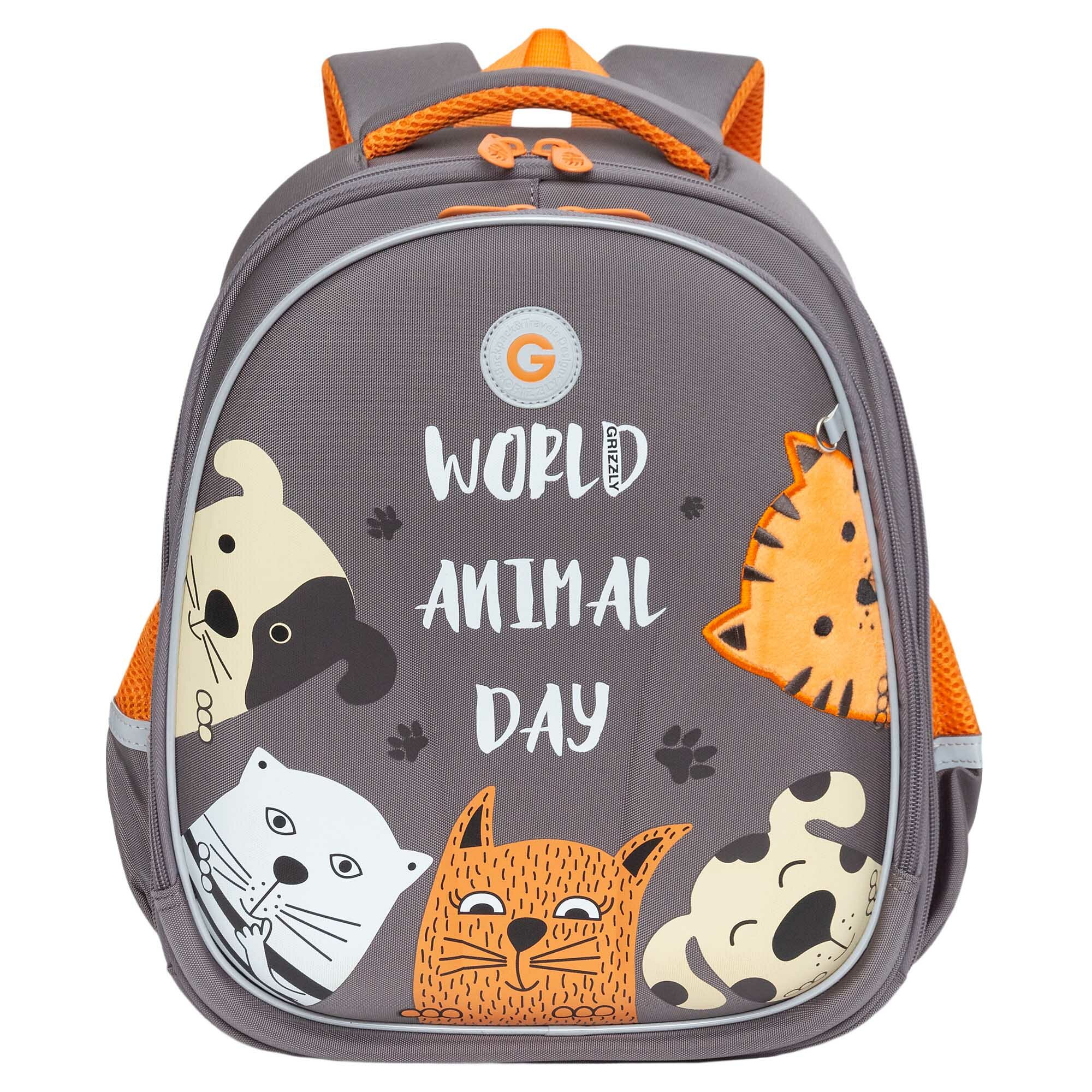 Ранец Grizzly анатомическая спинка, c брелоком, RAINBOW CAT, 36х28х20, RAz-486-2/1