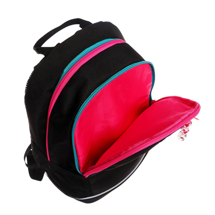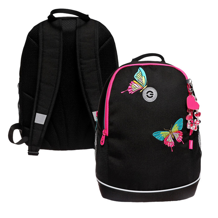 Рюкзак школьный, 38 х 28 х 18 см, Grizzly, эргономичная спинка, + брелок, чёрный