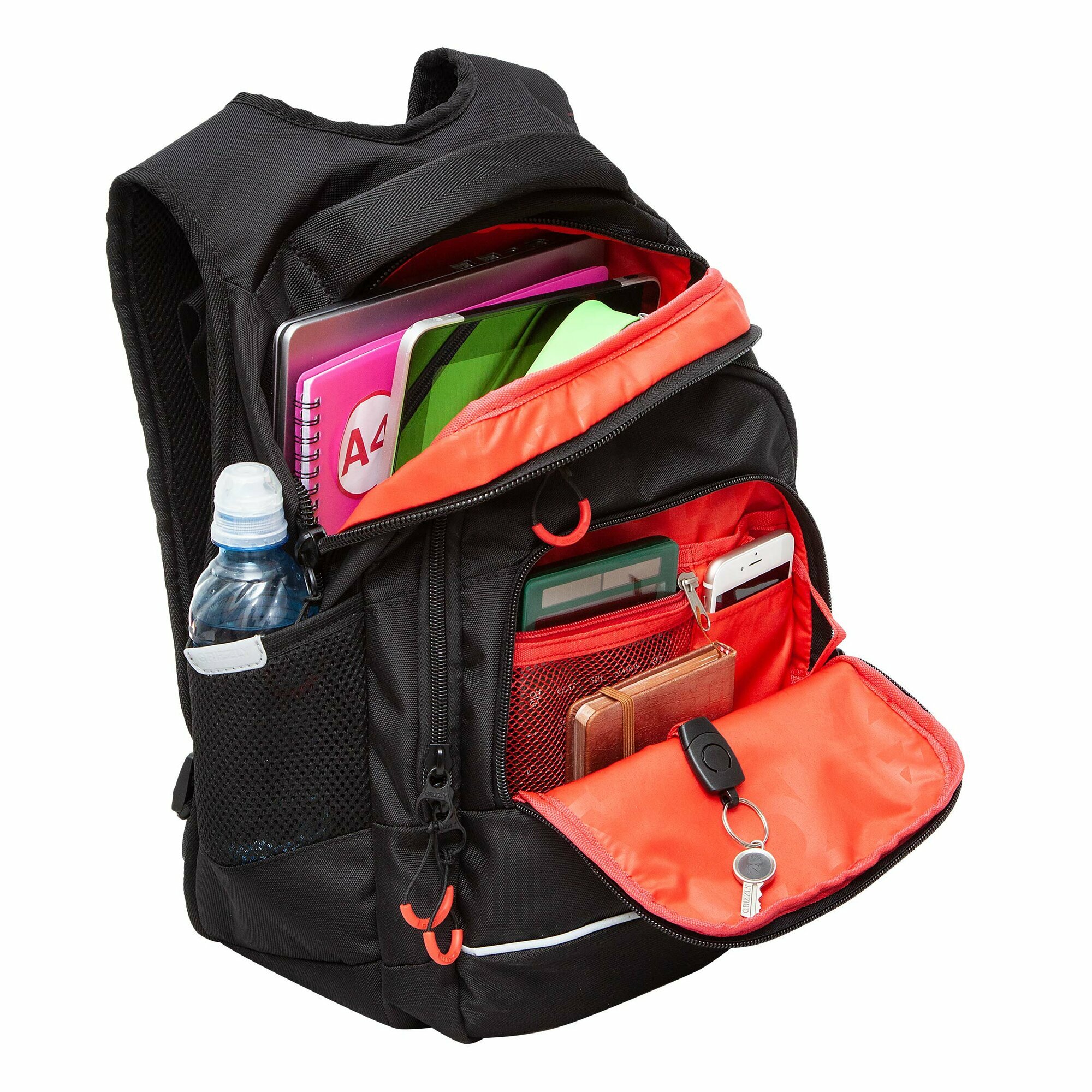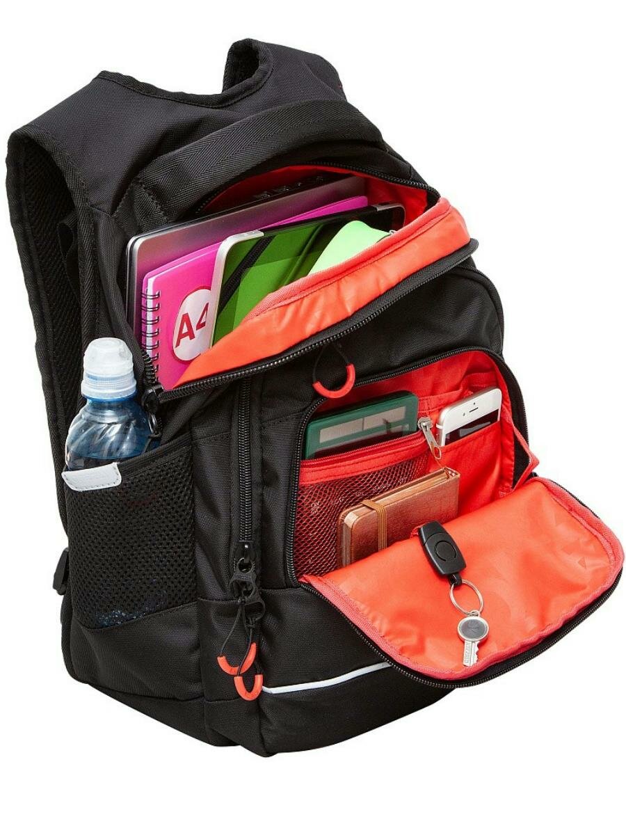 Рюкзак школьный, 40 х 25 х 22 см, Grizzly, эргономичная спинка, отделение для ноутбука, чёрный/оранжевый