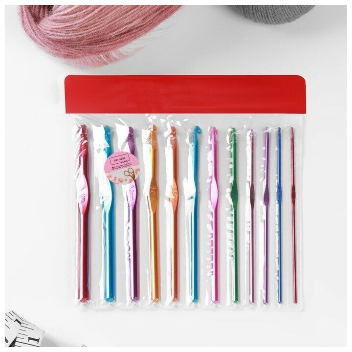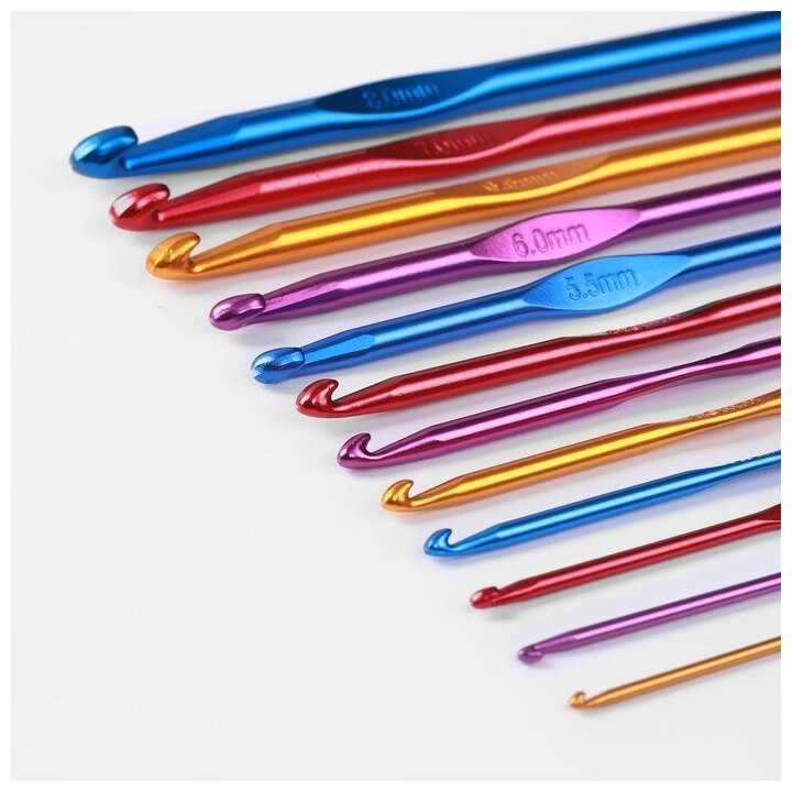 Набор крючков для вязания, d = 2-8 мм, 14.5 см, 12 шт, цвет разноцветный