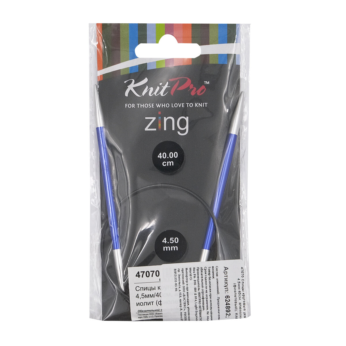 Купить 47070 Knit Pro Спицы круговые для вязания Zing 4,5мм/40см, алюминий