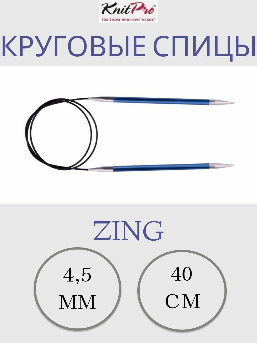 Спицы для вязания Knit Pro круговые Zing 40см, 5,0мм, арт.47071 шт