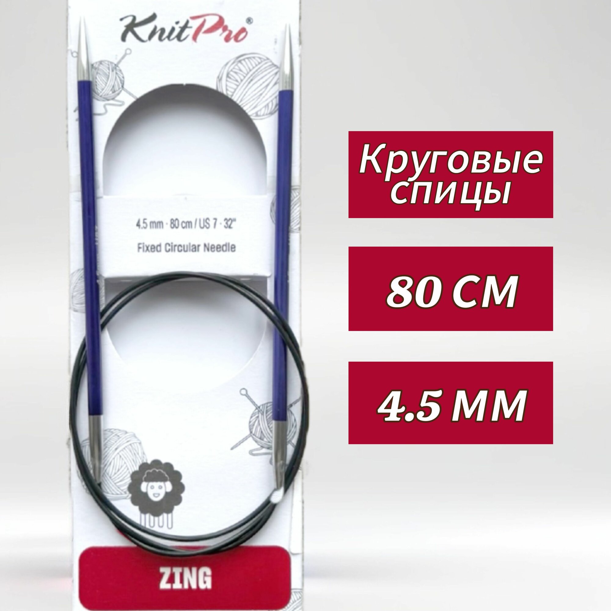 47130 Knit Pro Спицы круговые для вязания Zing 4,5мм/80см, алюминий