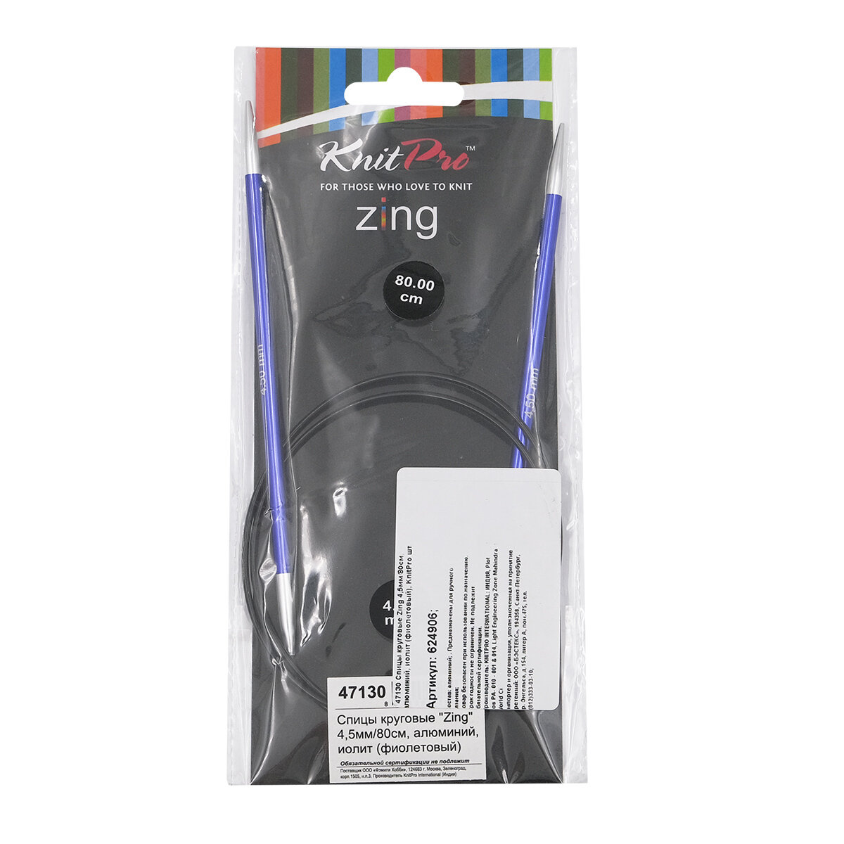 Купить Спицы круговые Zing 4,5 мм/80 см, алюминий, иолит (фиолетовый), KnitPro