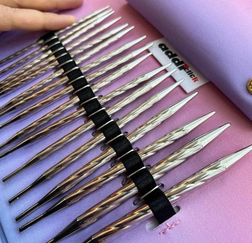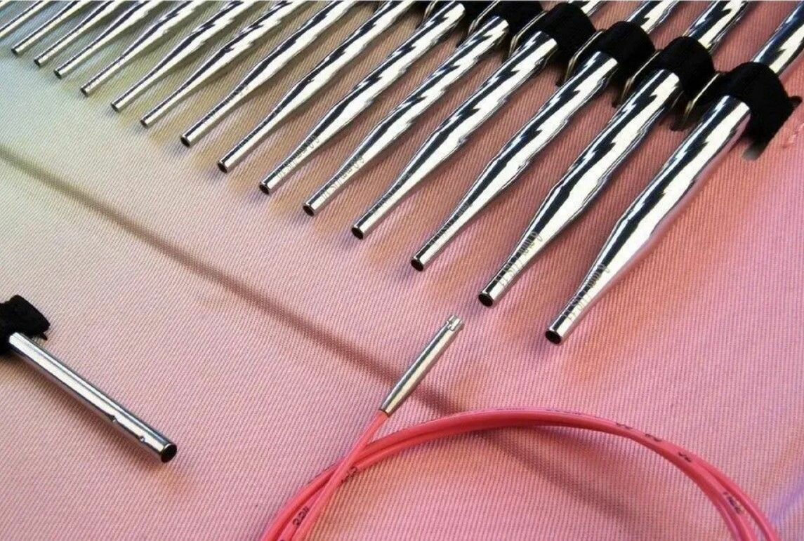 | Комплектация | - 8 пар спиц длиной 12,5 см: 3,5 мм, 4,0 мм, 4,5 мм, 5,0 мм, 5,5 мм, 6,0 мм, 7,0 мм, 8,0 мм. - 3 гибких розовых тросика Addi (также можно использовать как дополнительный тросик чтобы отложить петли): 60 см, 80 см, 100 см. - 2силиконовых диска. - Эргономичный текстильный органайзер для хранения. Снаружи имеет водоотталкивающее покрытие. |