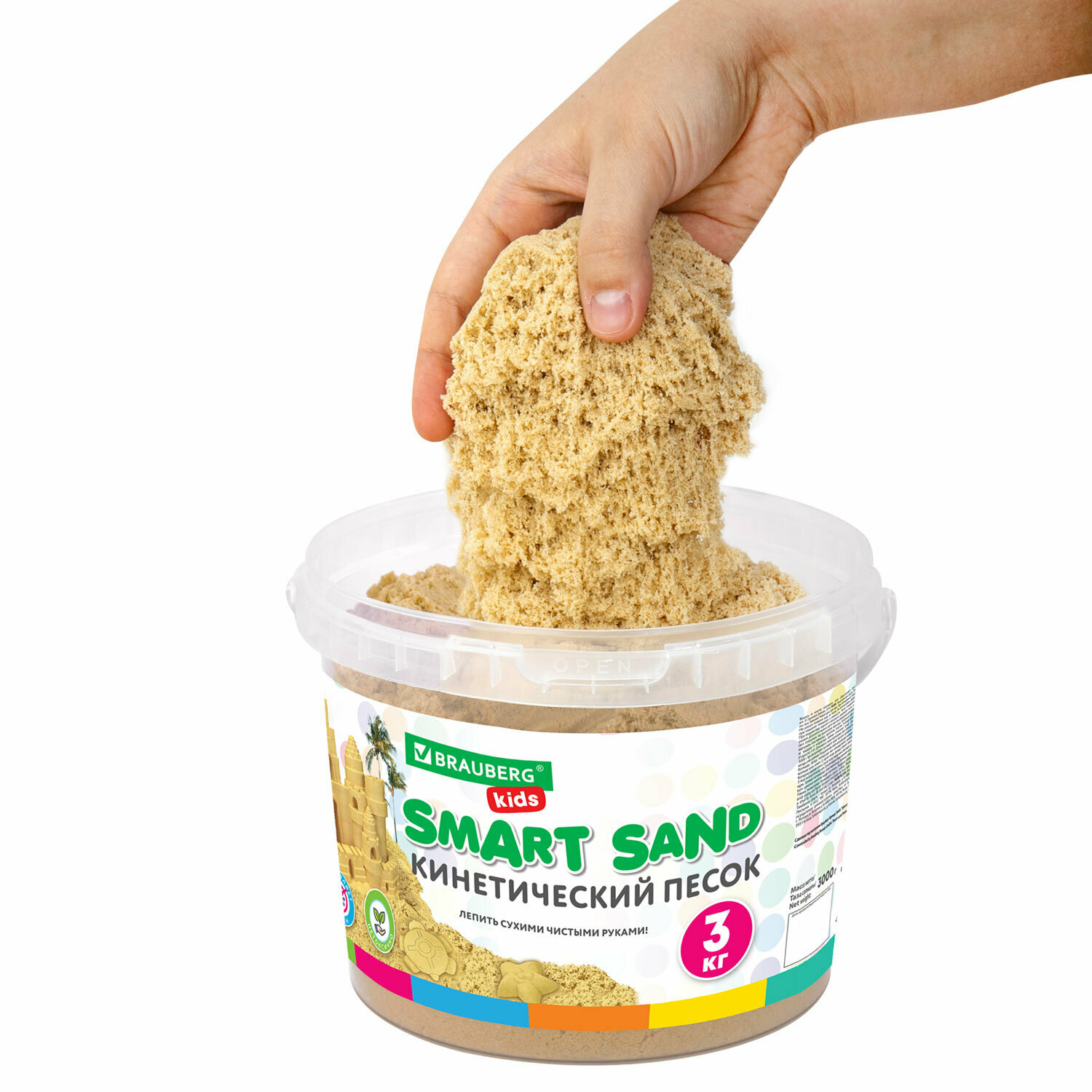 Песок для лепки кинетический Brauberg песочный, 3000 г, ведро, KIDS, 665479