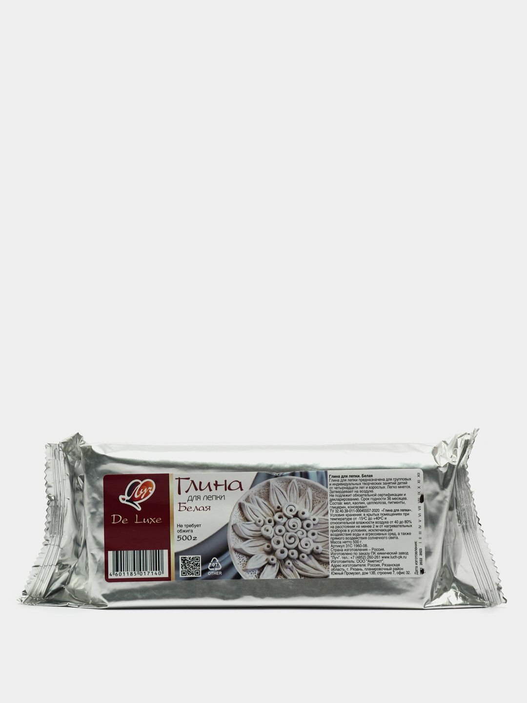 Глина для лепки Белая 500г Луч De Luxe, не требует обжига 7387143 интересное: