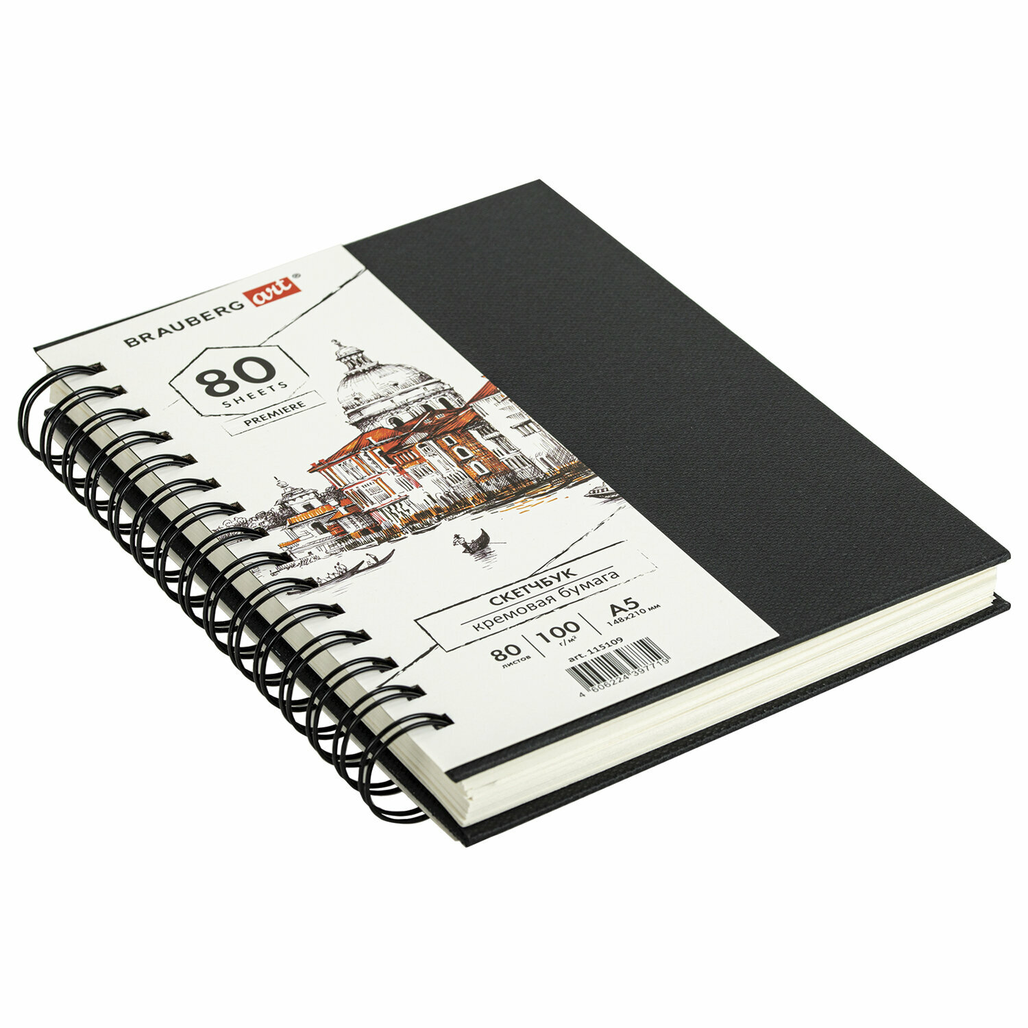 Скетчбук, слоновая кость 100 г/м2, 148х210 мм, 80 л, гребень, твердая обложка, BRAUBERG ART PREMIERE, 115109