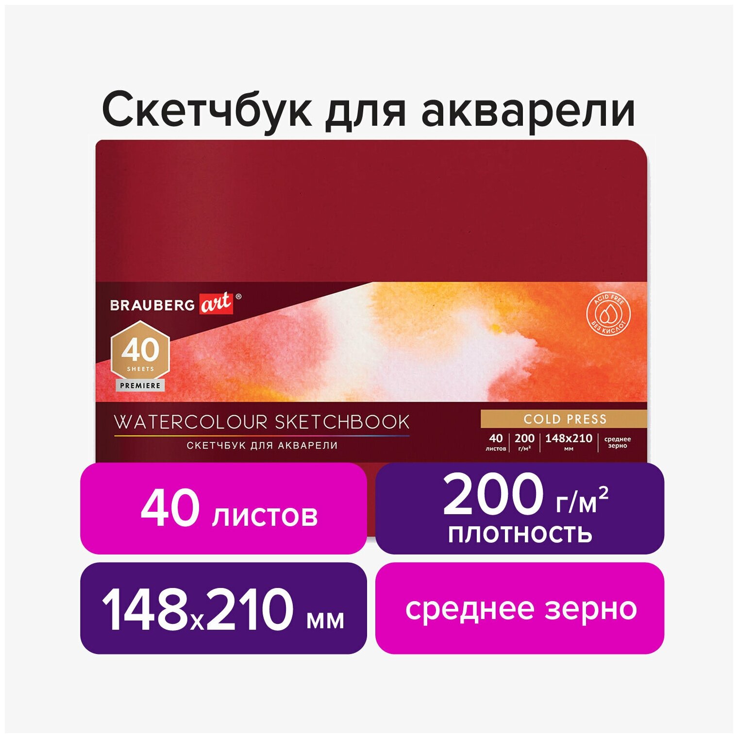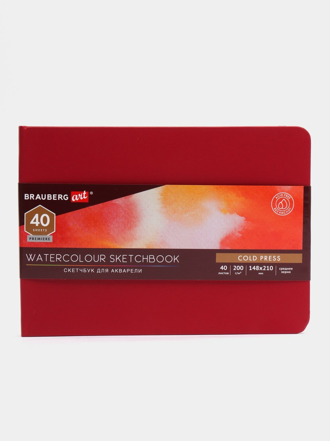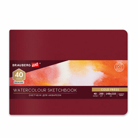 Скетчбук для акварели, 200 г/м2, 148х210 мм, среднее зерно, 40 л, кожзам, резинка, BRAUBERG ART PREMIERE, 113265