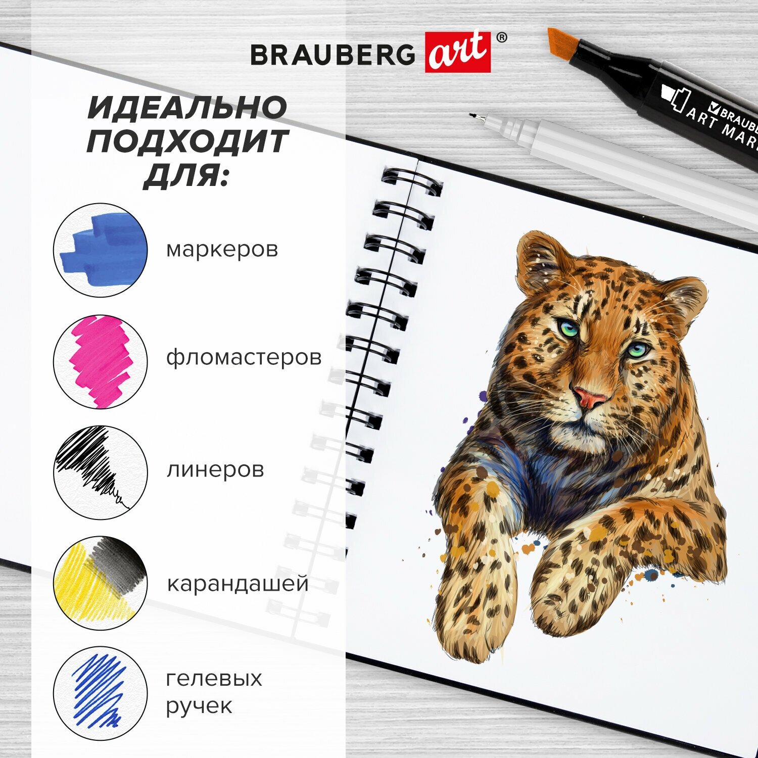 Скетчбук Brauberg для маркеров, бумага ВХИ 200 г/м2, 145х205 мм, 40 листов, гребень, твердая обложка, черная