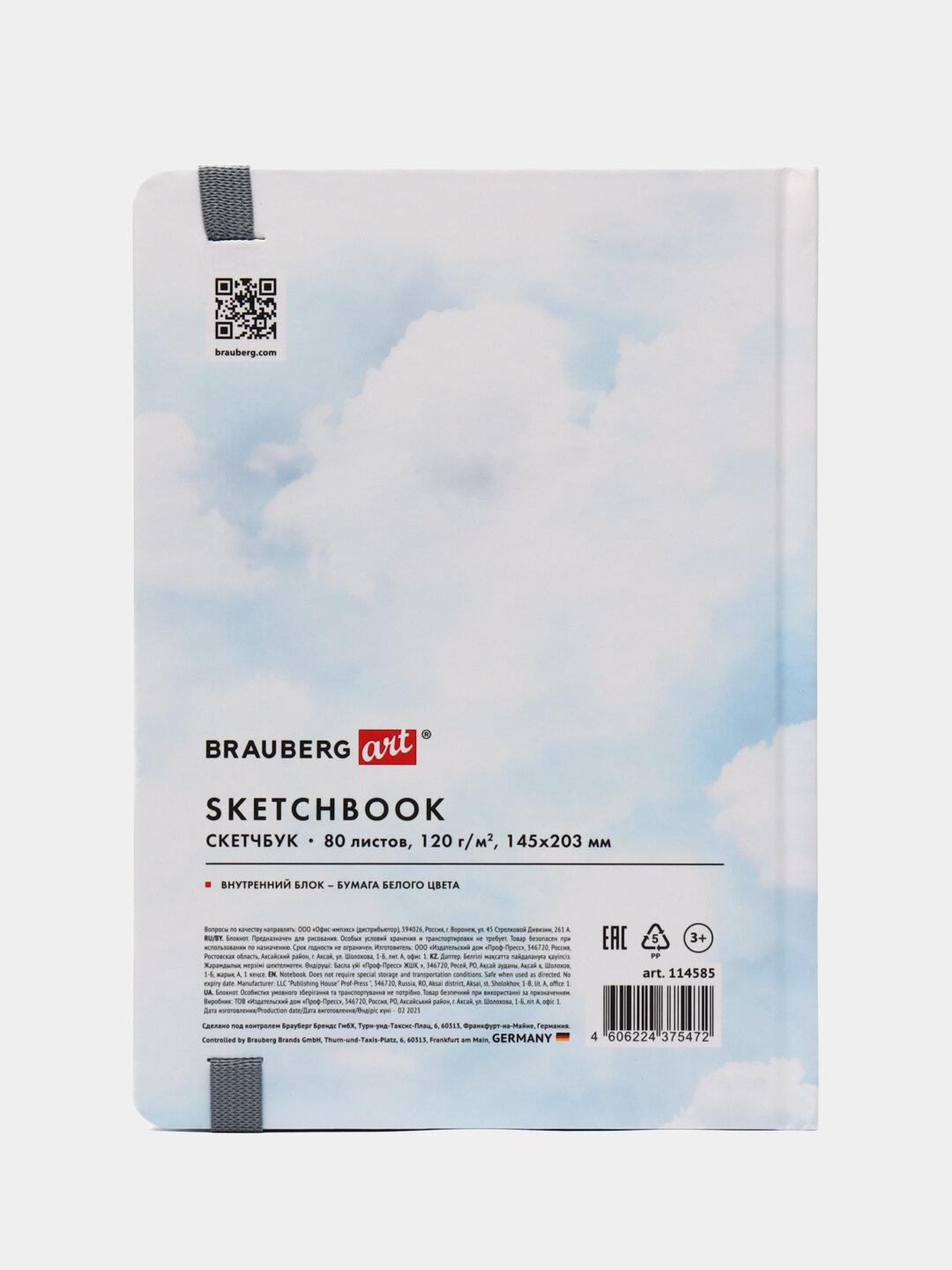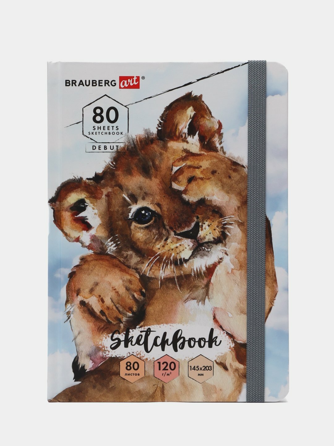 Скетчбук Brauberg белая бумага 120 г, 145х203 мм, 80 л, резинка, твердый, львенок (114585)
