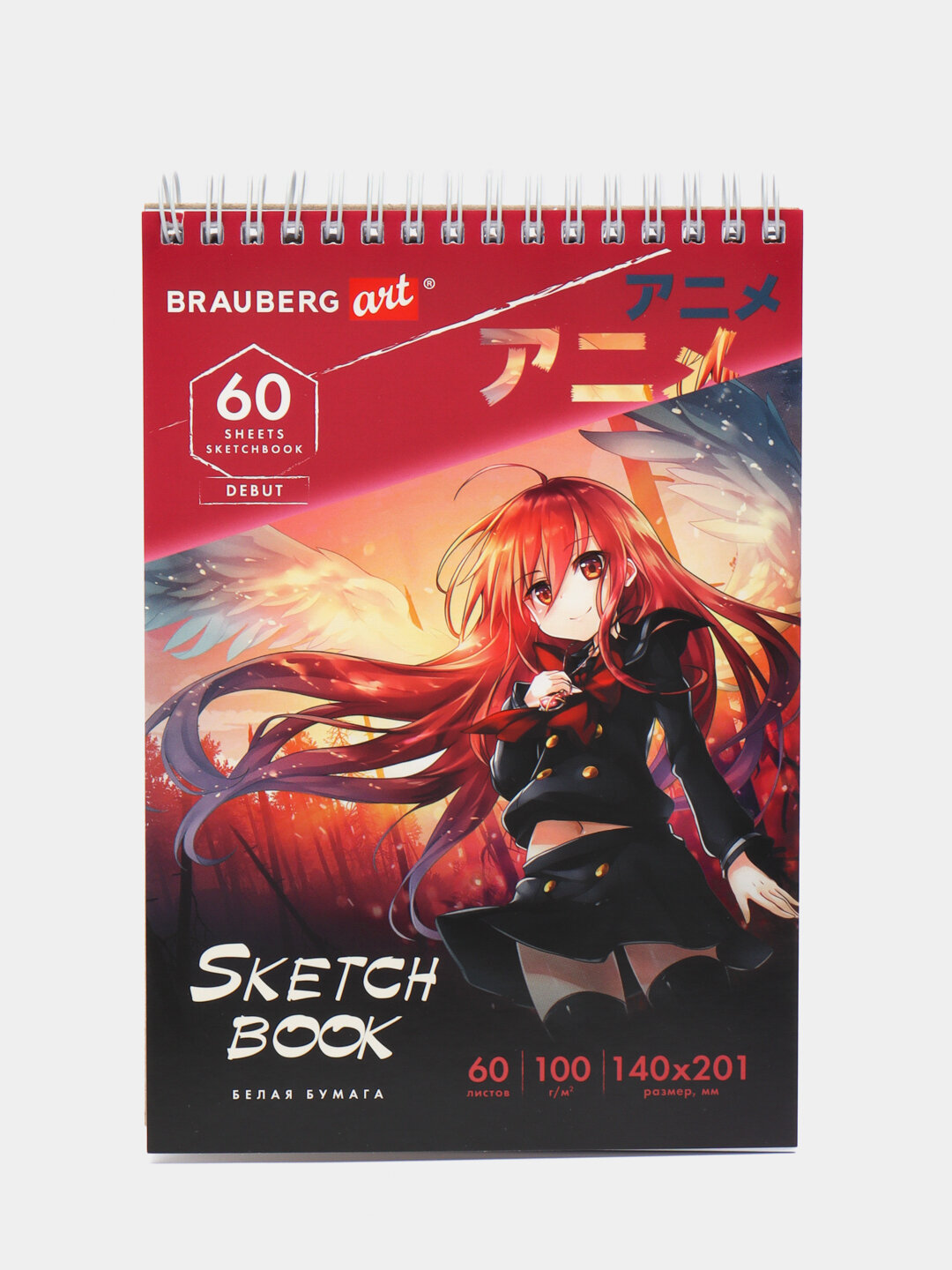 Купить Блокнот-Скетчбук, белая бумага 100г/м2, 140х201мм, 60л, гребень,жёст. подложка, BRAUBERG ART DEBUT, Аниме, 115061