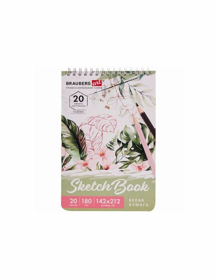 СохранитьБлокнот-Скетчбук для рисования эскизов белая бумага 180г/м 142х212мм, 20л, гребень, твердая обложка, Brauberg Art Classic интересное: