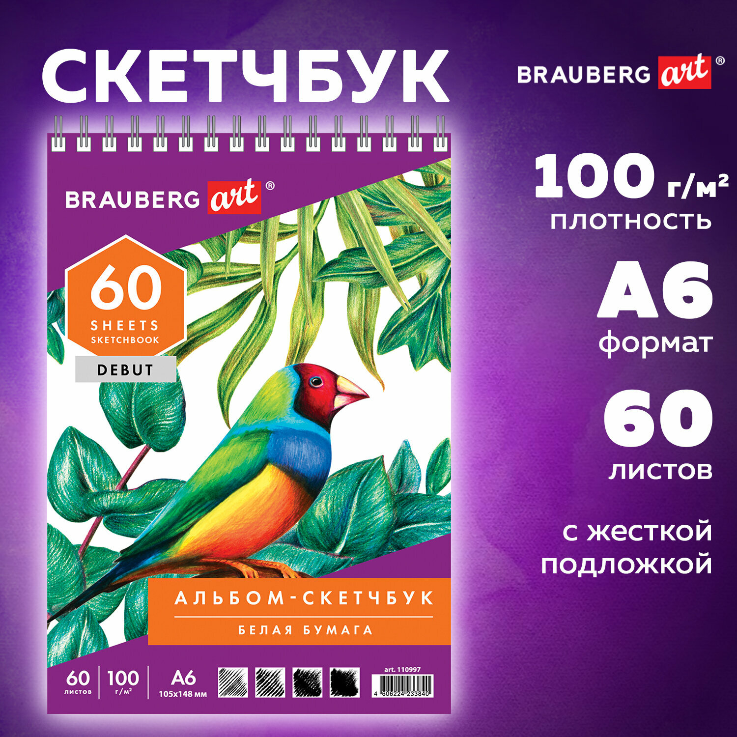 Блокнот-Скетчбук, белая бумага 100г/м2, 140х201мм, 60 листов, BRAUBERG ART DEBUT, Порисуем