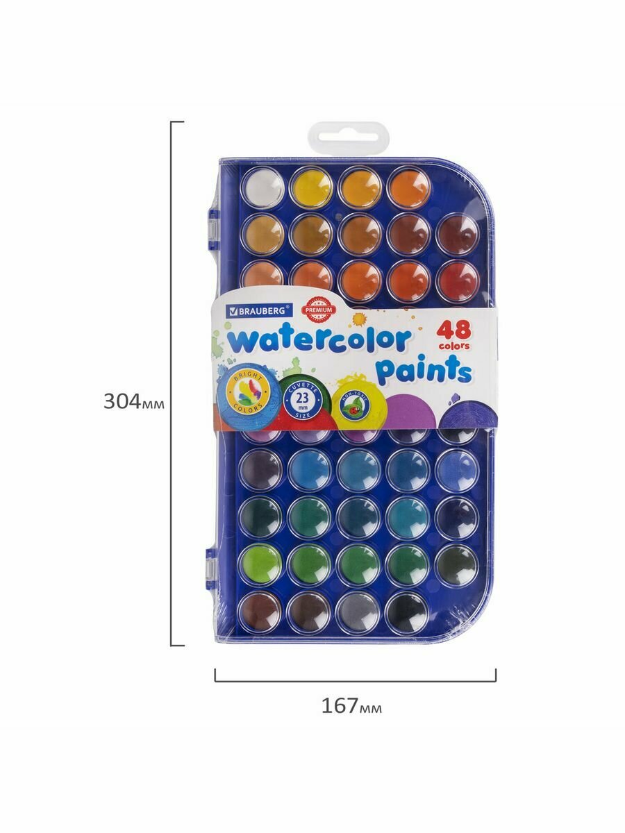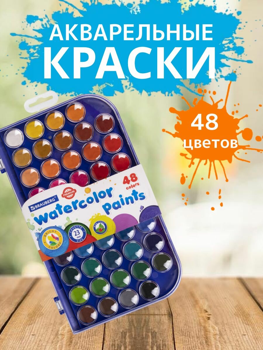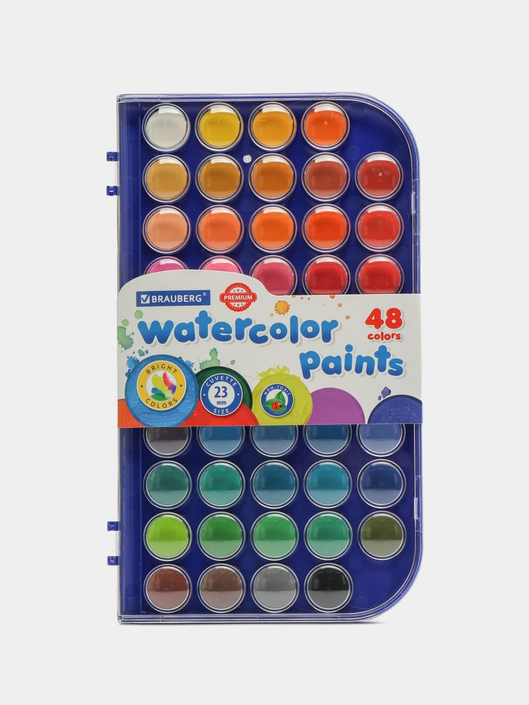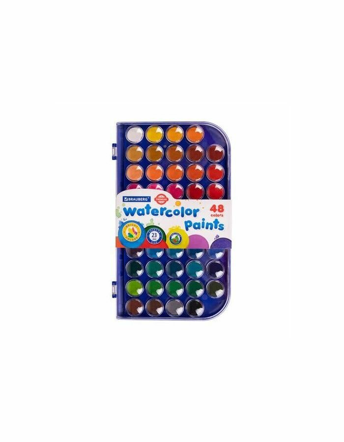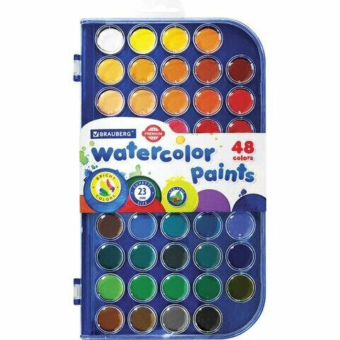 Купить Краски акварельные для рисования сухие Brauberg Premium 48 цветов, круглые кюветы 23 мм