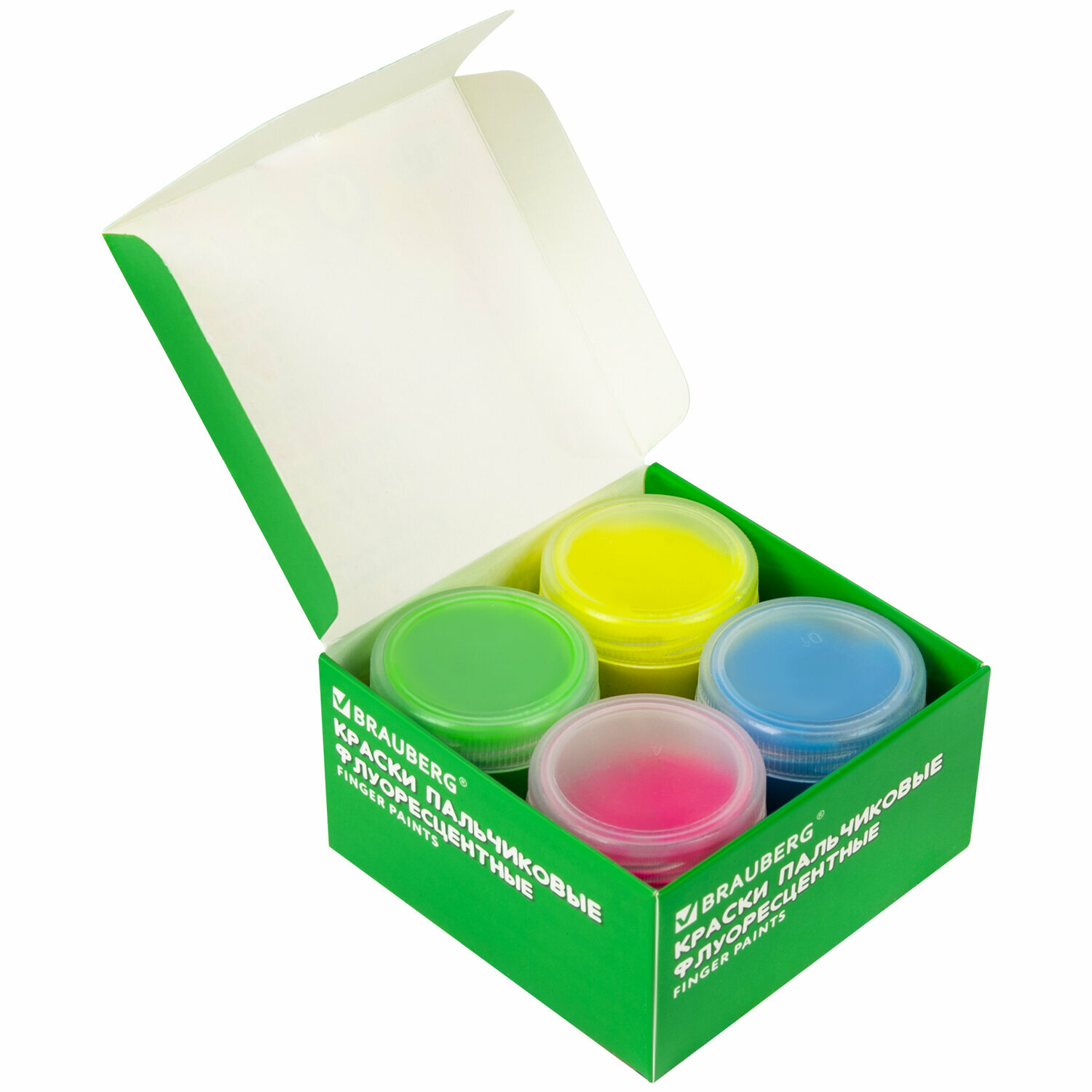 Купить Пальчиковые краски детские для рисования флуоресцентные для малышей от 1 года, 4 цвета по 40 мл, Brauberg Kids, 192399