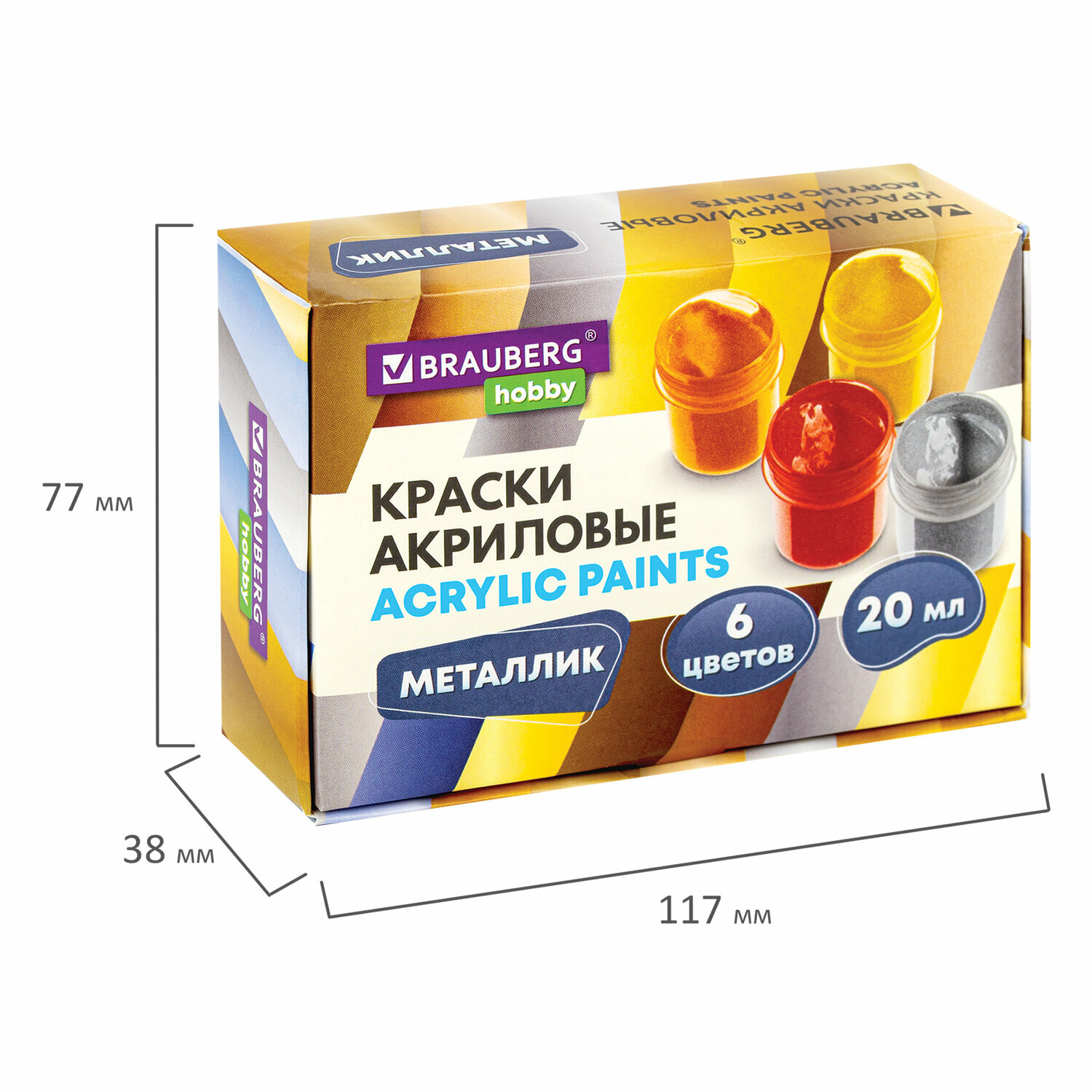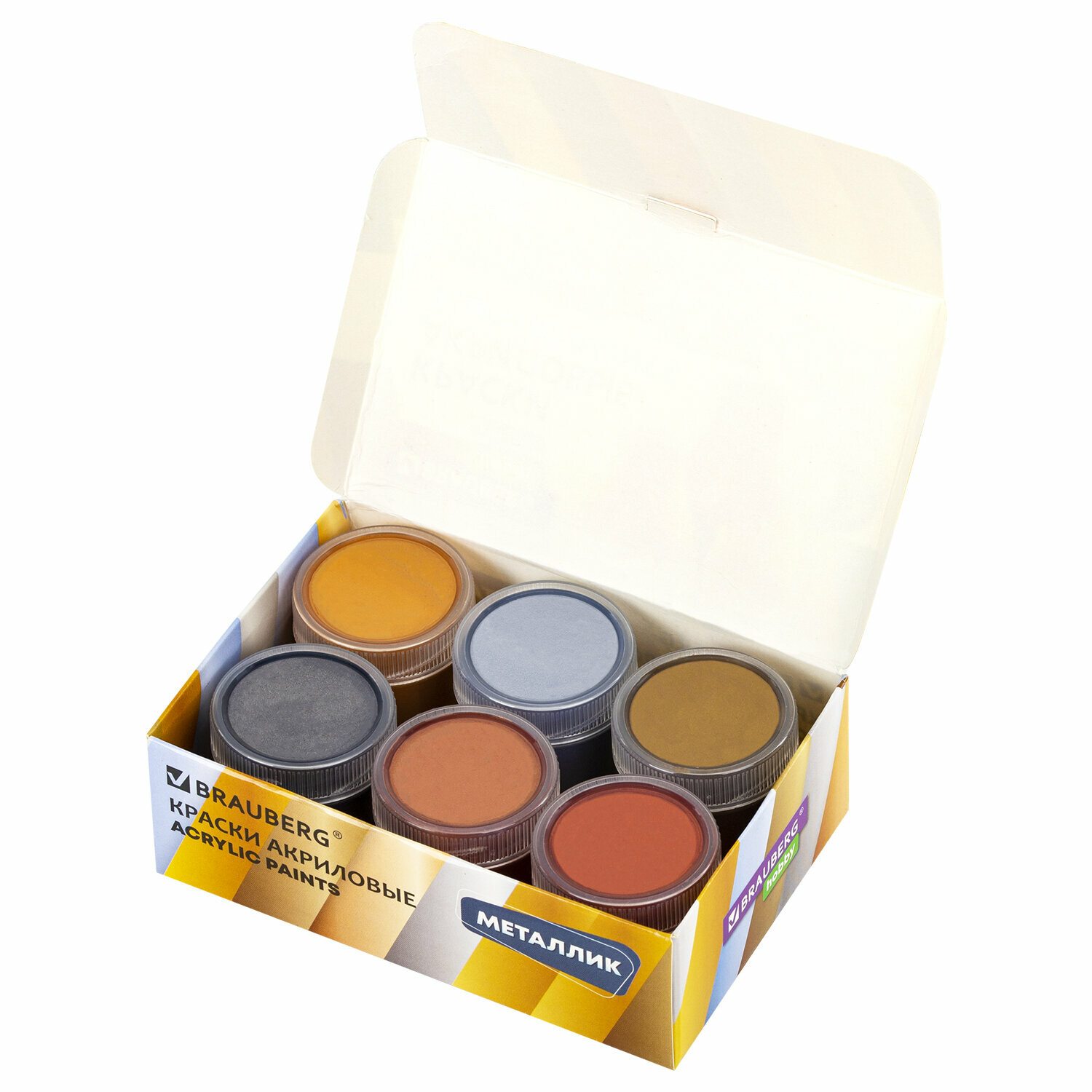 Купить Краски акриловые набор Металлик для рисования и творчества 6 цветов по 20 мл Brauberg Hobby, 192437