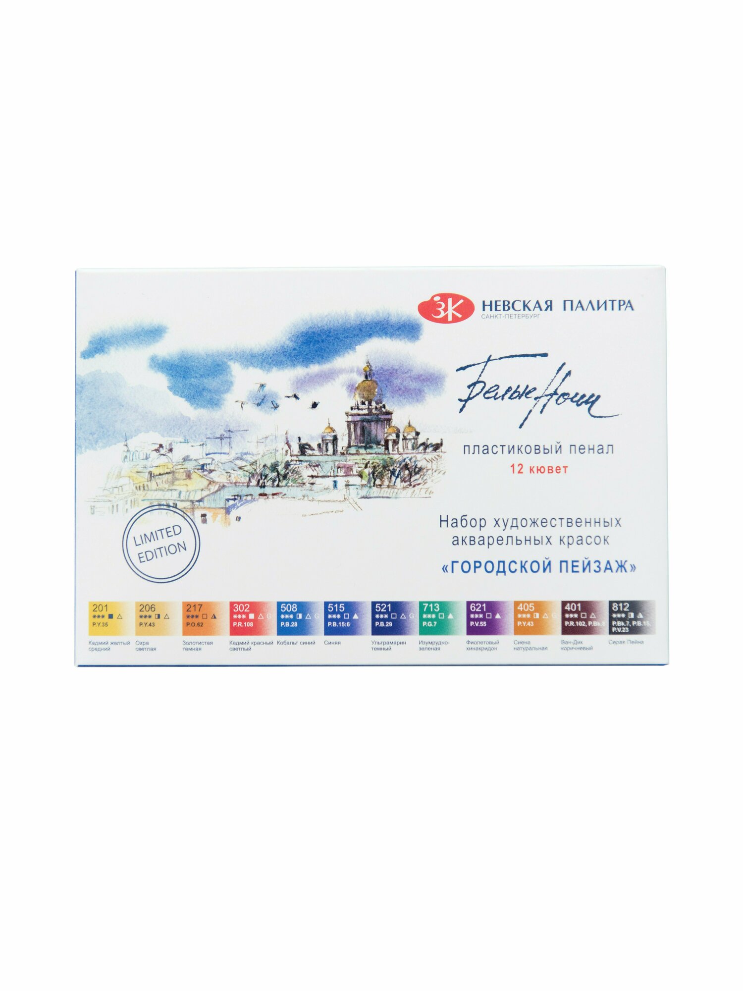 Купить Белые ночи / Акварельные краски "Городской пейзаж", 12 цветов по 2,5 мл, ЗХК Невская палитра