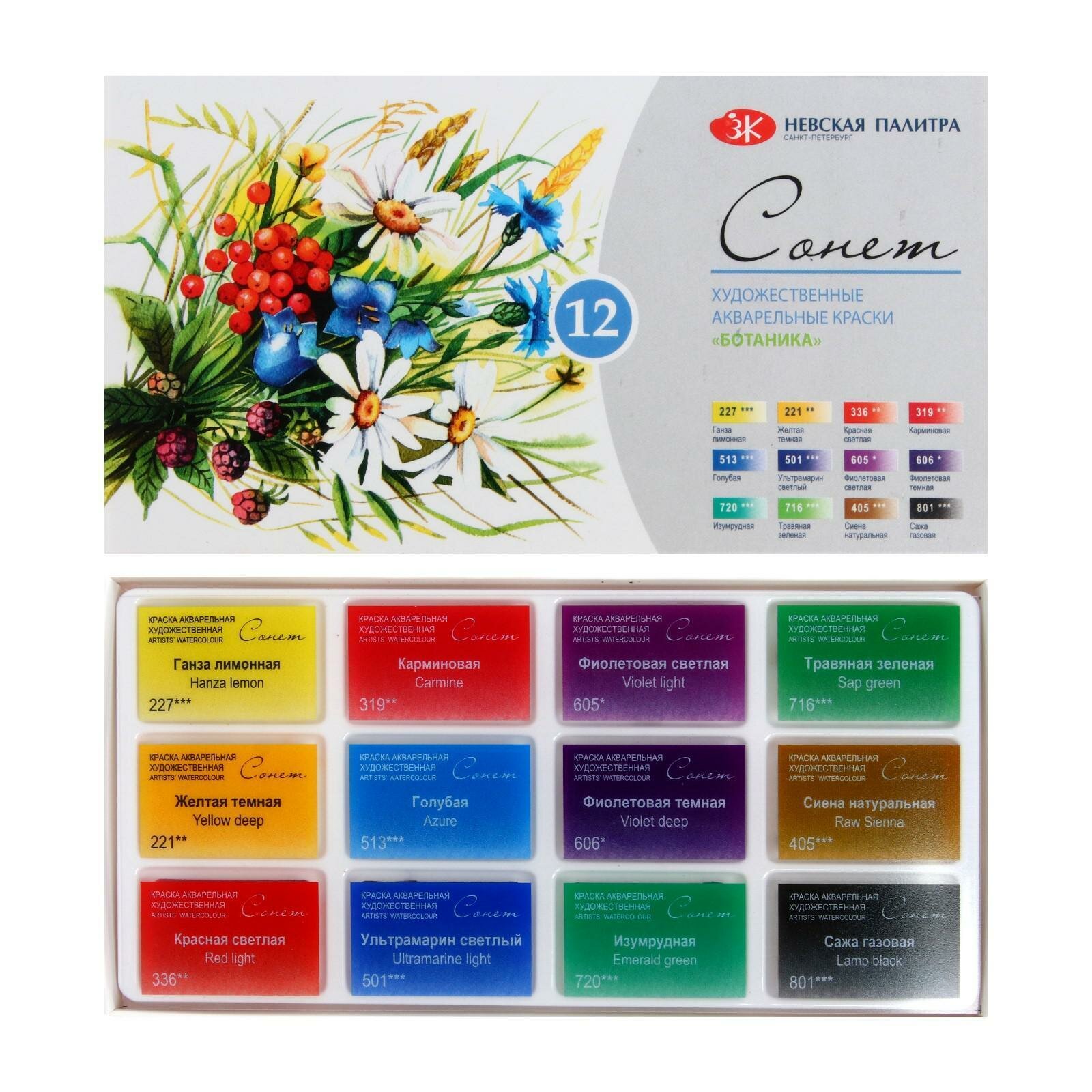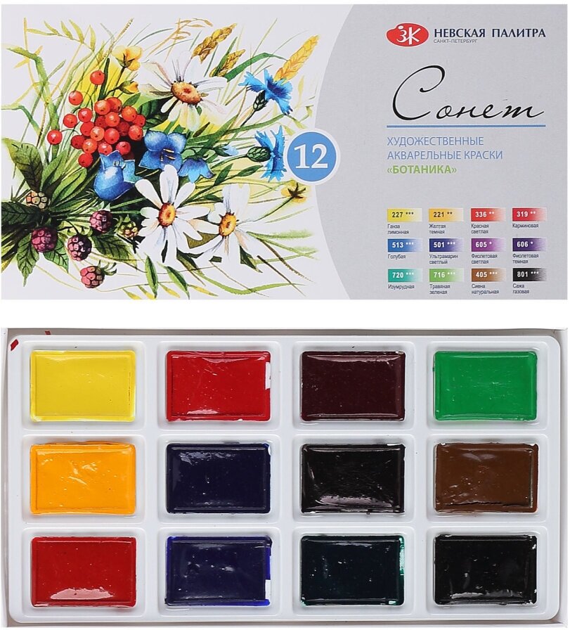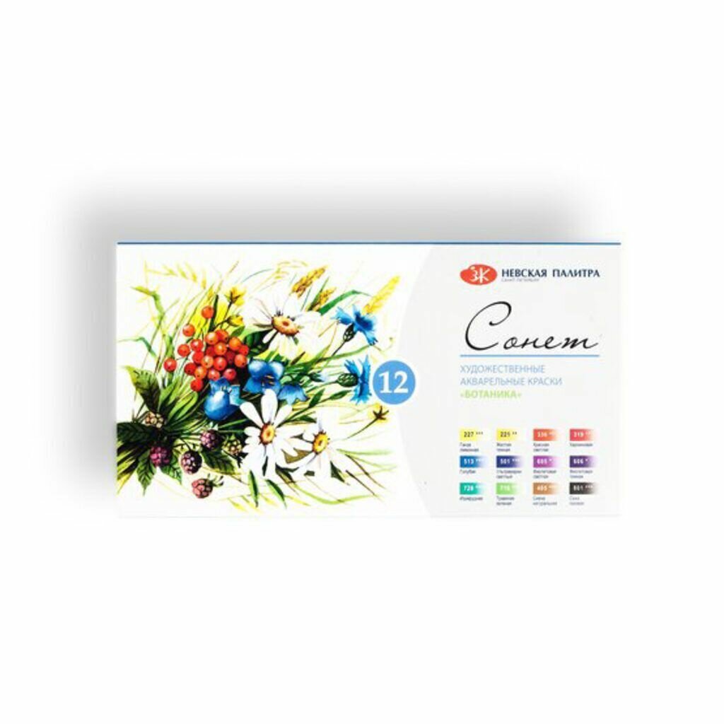 Купить Краски акварельные "Ботаника" Сонет ЗХК Невская палитра, 12 цветов по 2,5 мл (35411880)