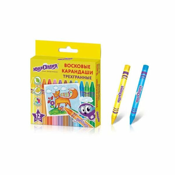 | Комплектация | Карандаши восковые Юнландик и Мудрый лис, 12 цветов |