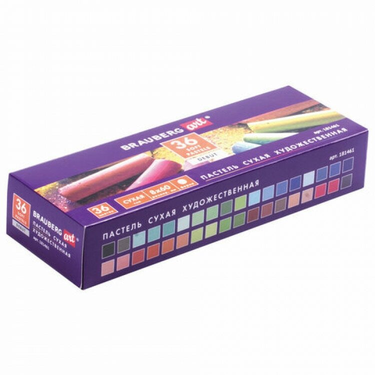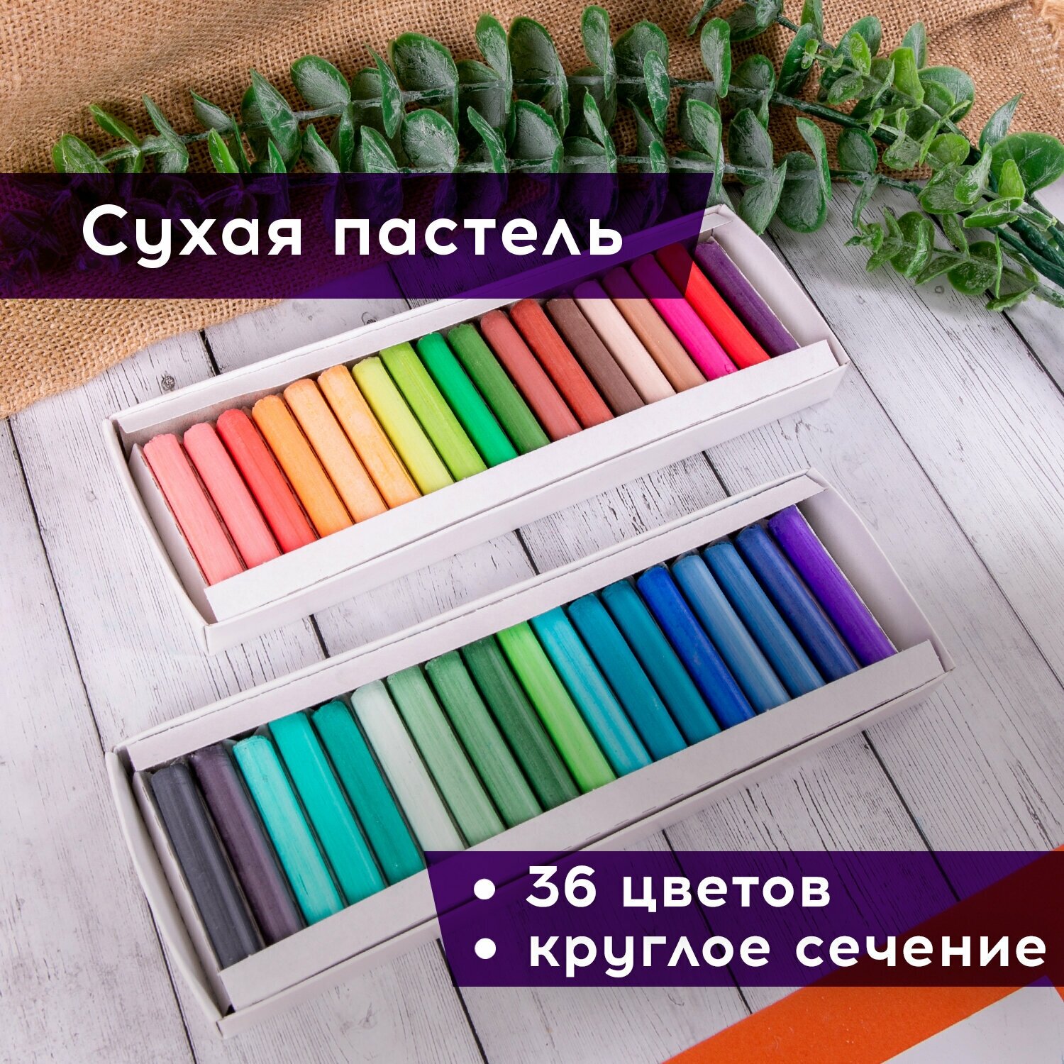 Купить Пастель сухая художественная для рисования, набор красок 36 цветов, круглое сечение, Brauberg Art Debut, 181461