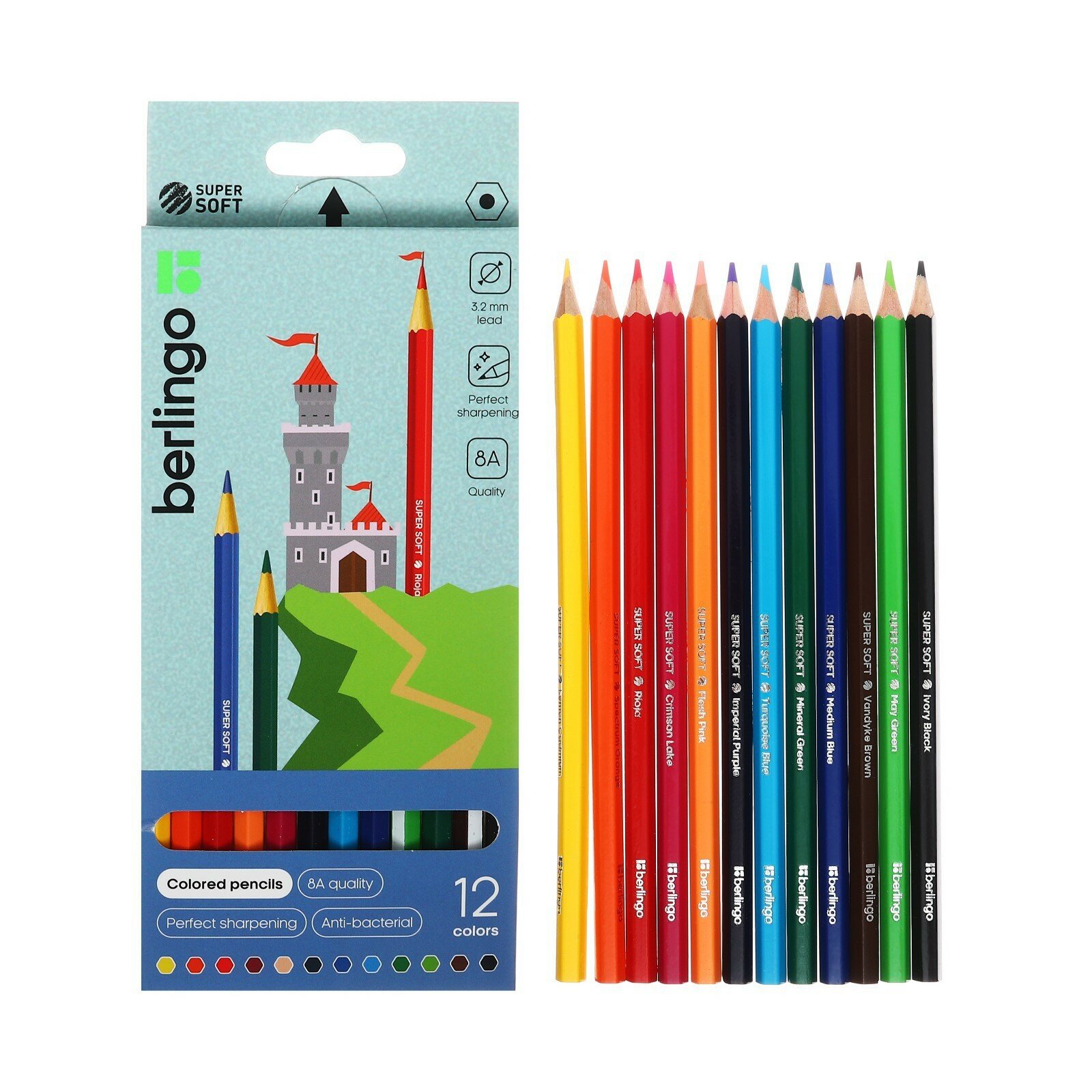 Карандаши цветные Berlingo "SuperSoft. Замки", 12цв., заточен., картон, европодвес (арт. 297230)