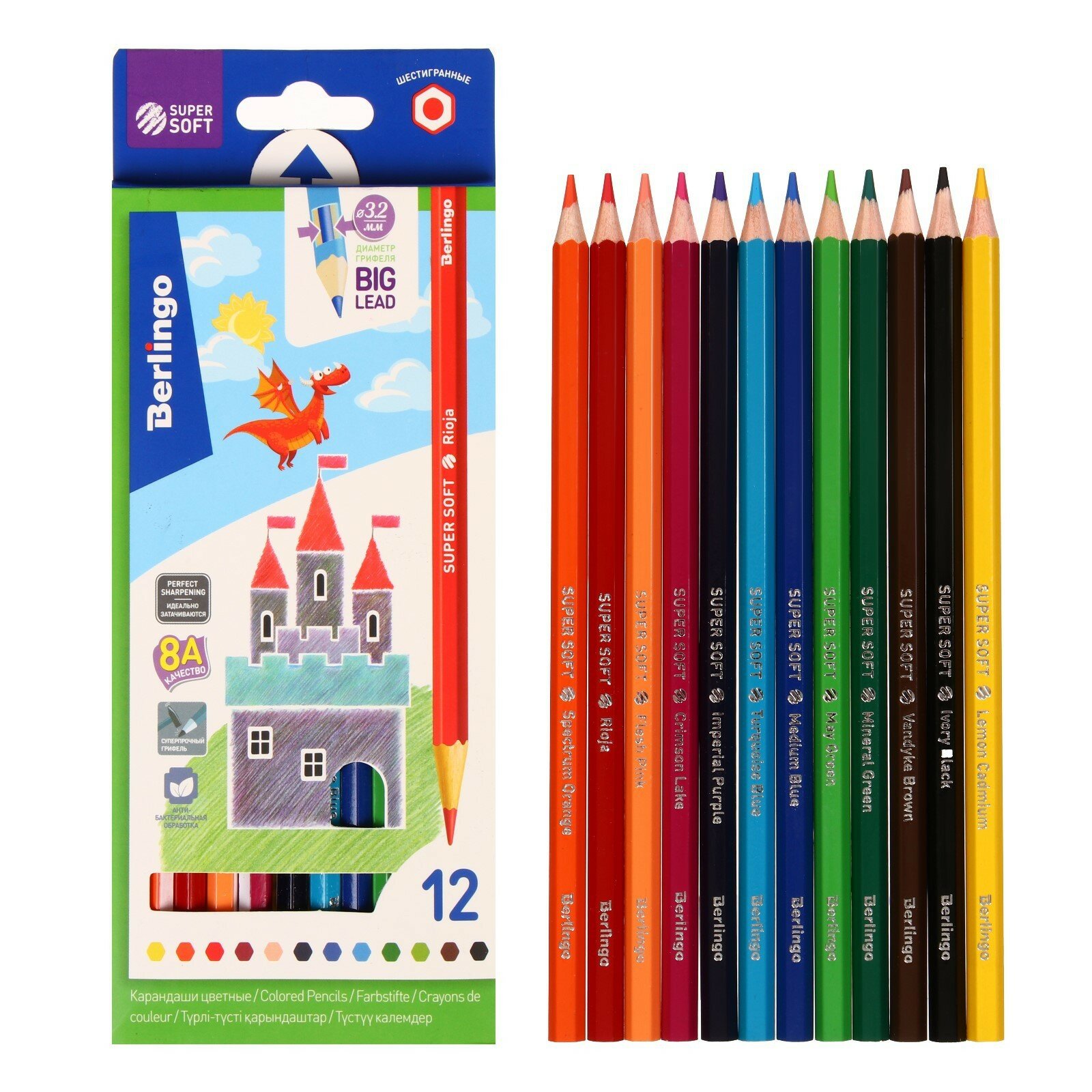 Купить Цветные карандаши для школы 12 цветов, шестигранные / Набор цветных карандашей для рисования школьный Berlingo "SuperSoft. Замки"