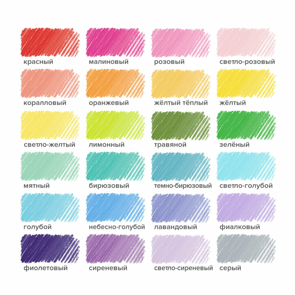 Карандаши цветные BRAUBERG PASTEL, 24 пастельных цвета, трёхгранные, грифель 3 мм, 181851