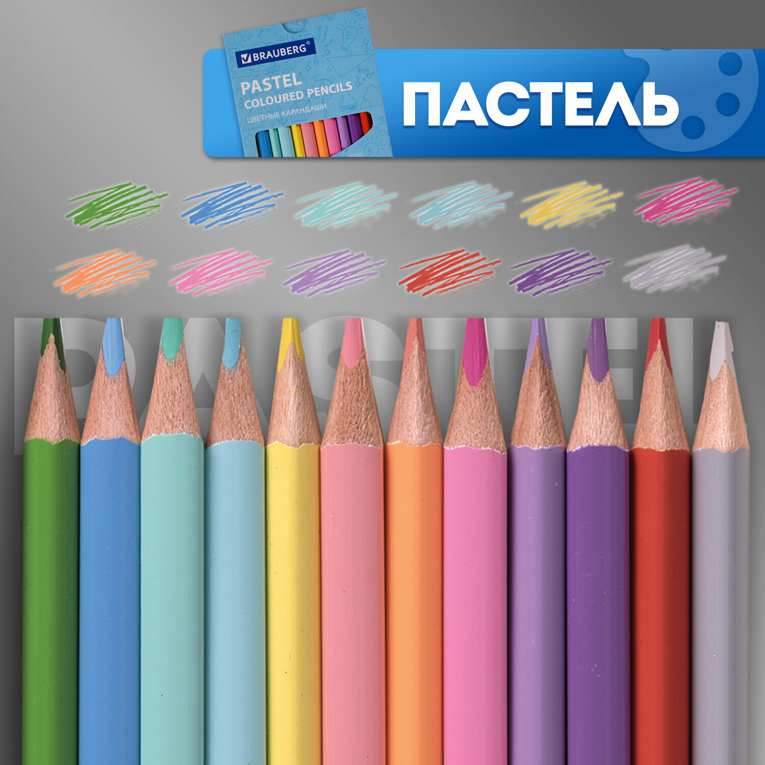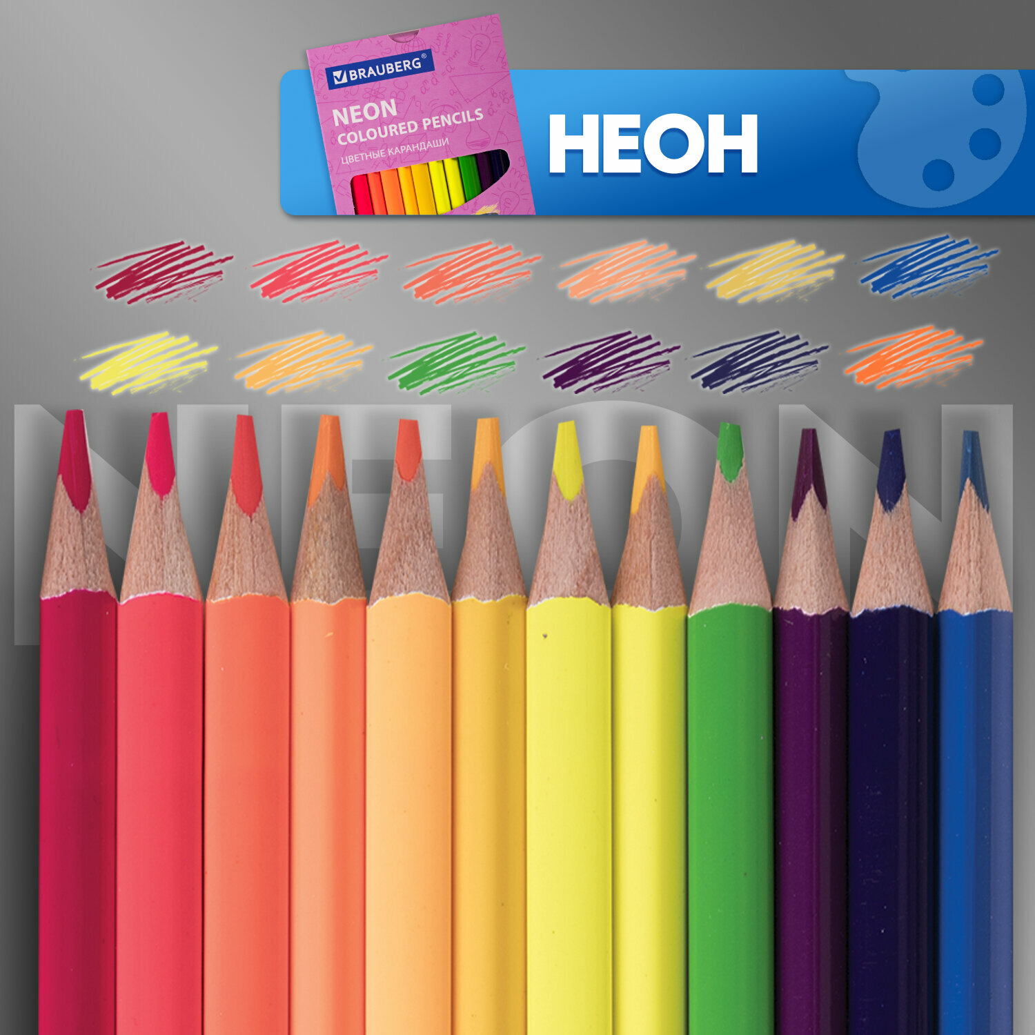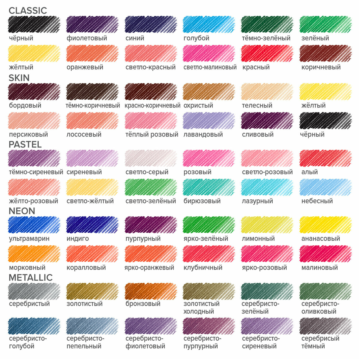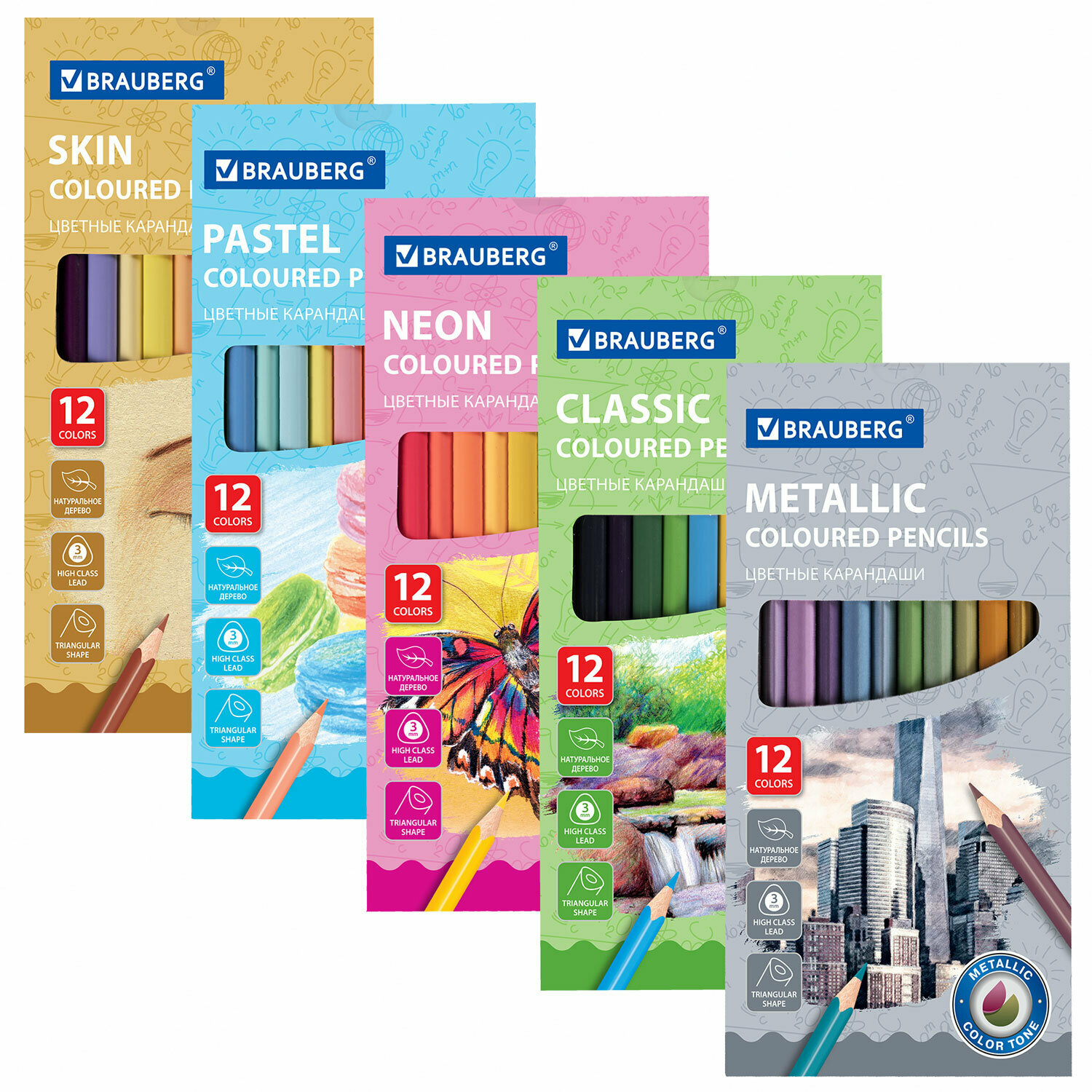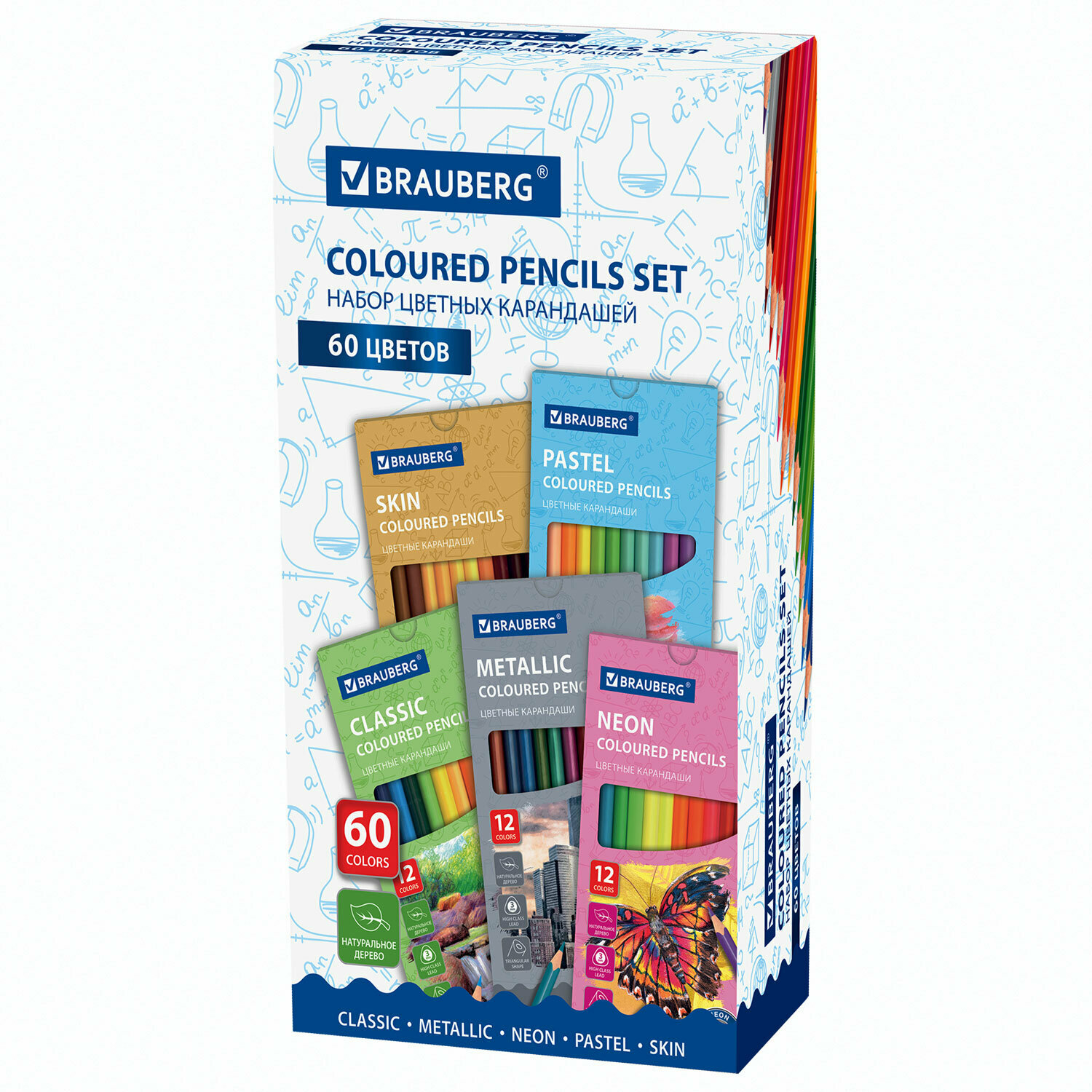 Карандаши цветные BRAUBERG, 60 цветов (Базовые, Металлик, Неон, Пастель, Телесные), 181792