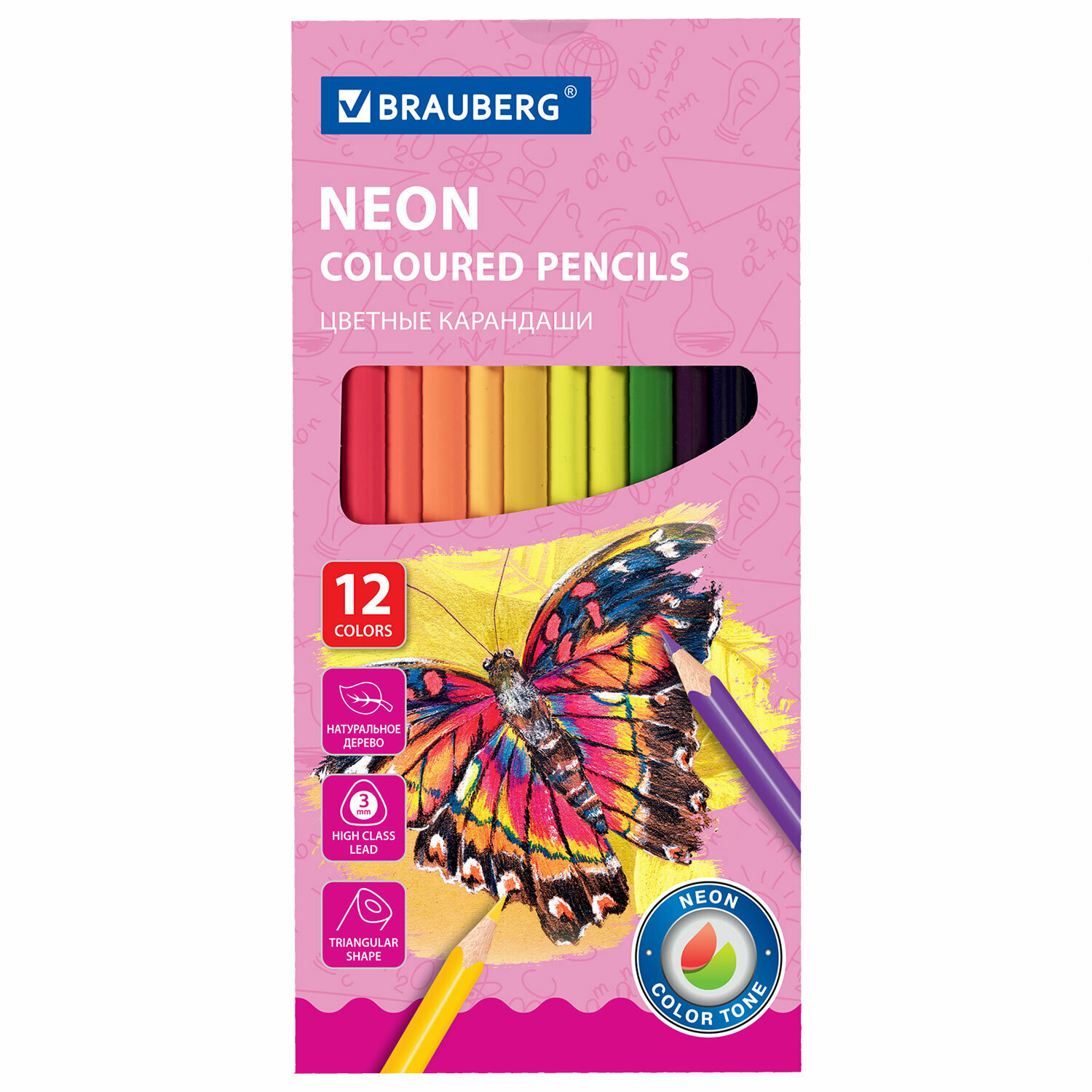 Купить Карандаши деревянные цветные для рисования Brauberg, 60 цветов (Базовые, Металлик, Неон, Пастель, Телесные), трехгранные, грифель 3 мм, натуральное дерево, 181792