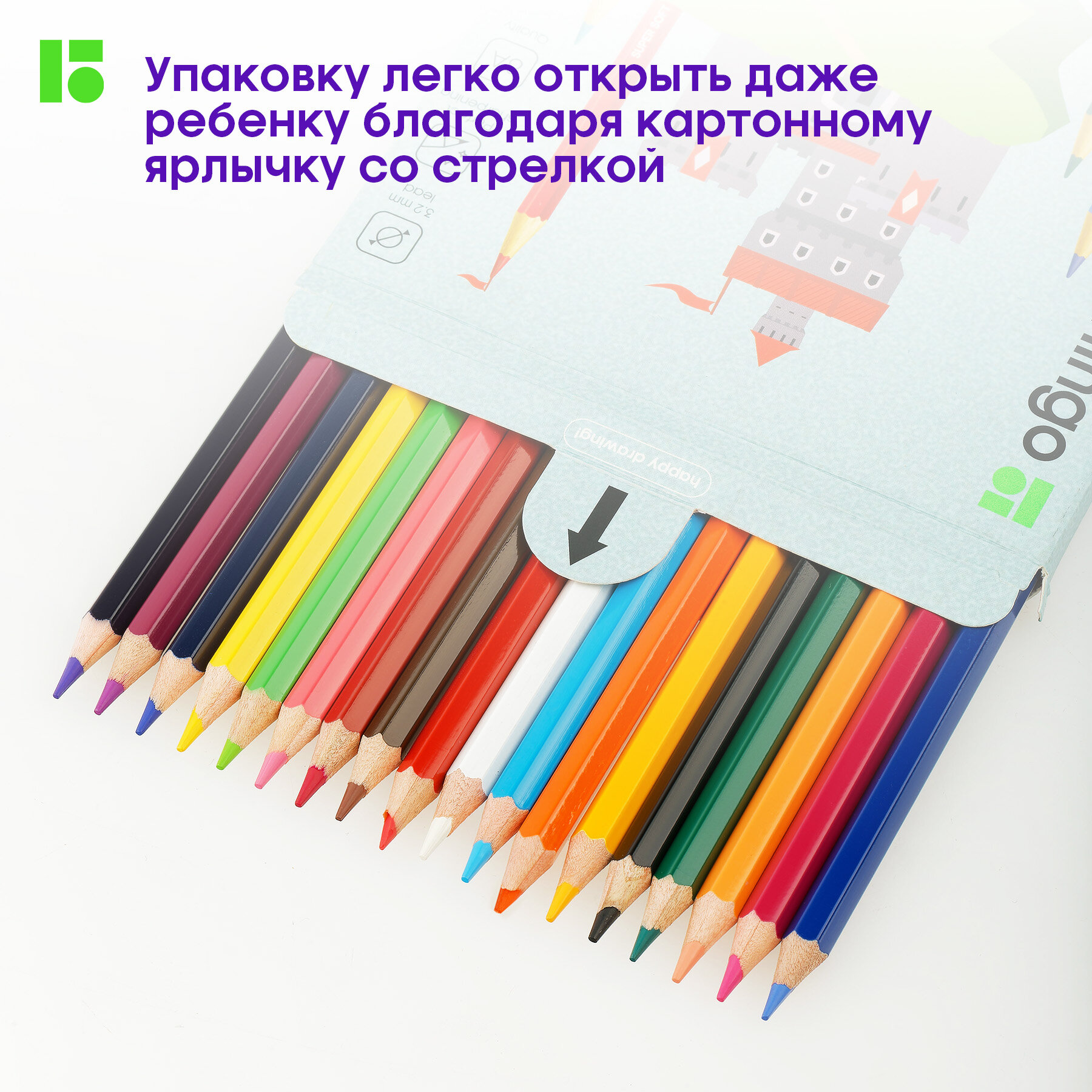 Купить Цветные карандаши для школы 18 цветов, шестигранные / Набор цветных карандашей для рисования школьный Berlingo "SuperSoft. Замки"
