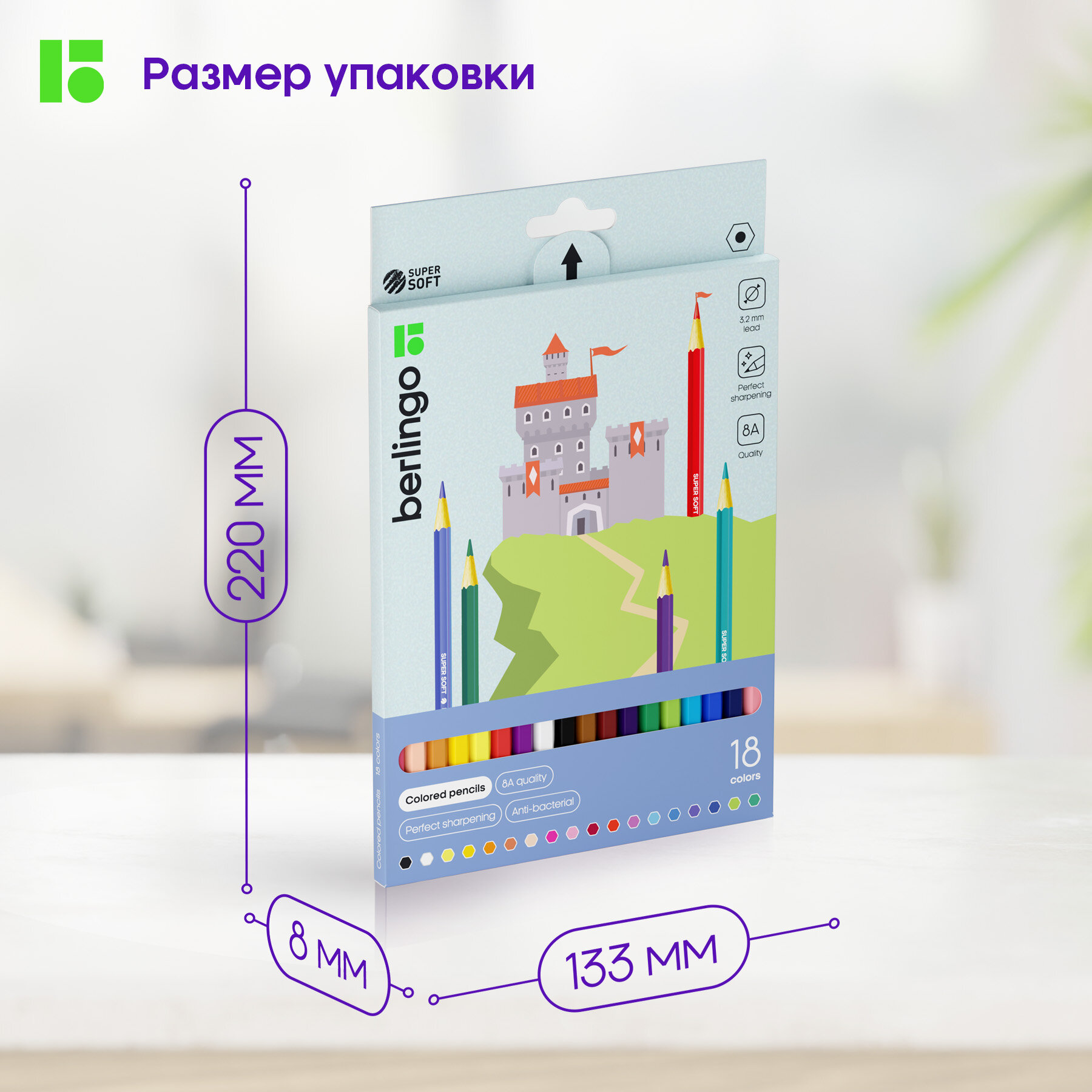 Цветные карандаши для школы 18 цветов, шестигранные / Набор цветных карандашей для рисования школьный Berlingo "SuperSoft. Замки" интересное: