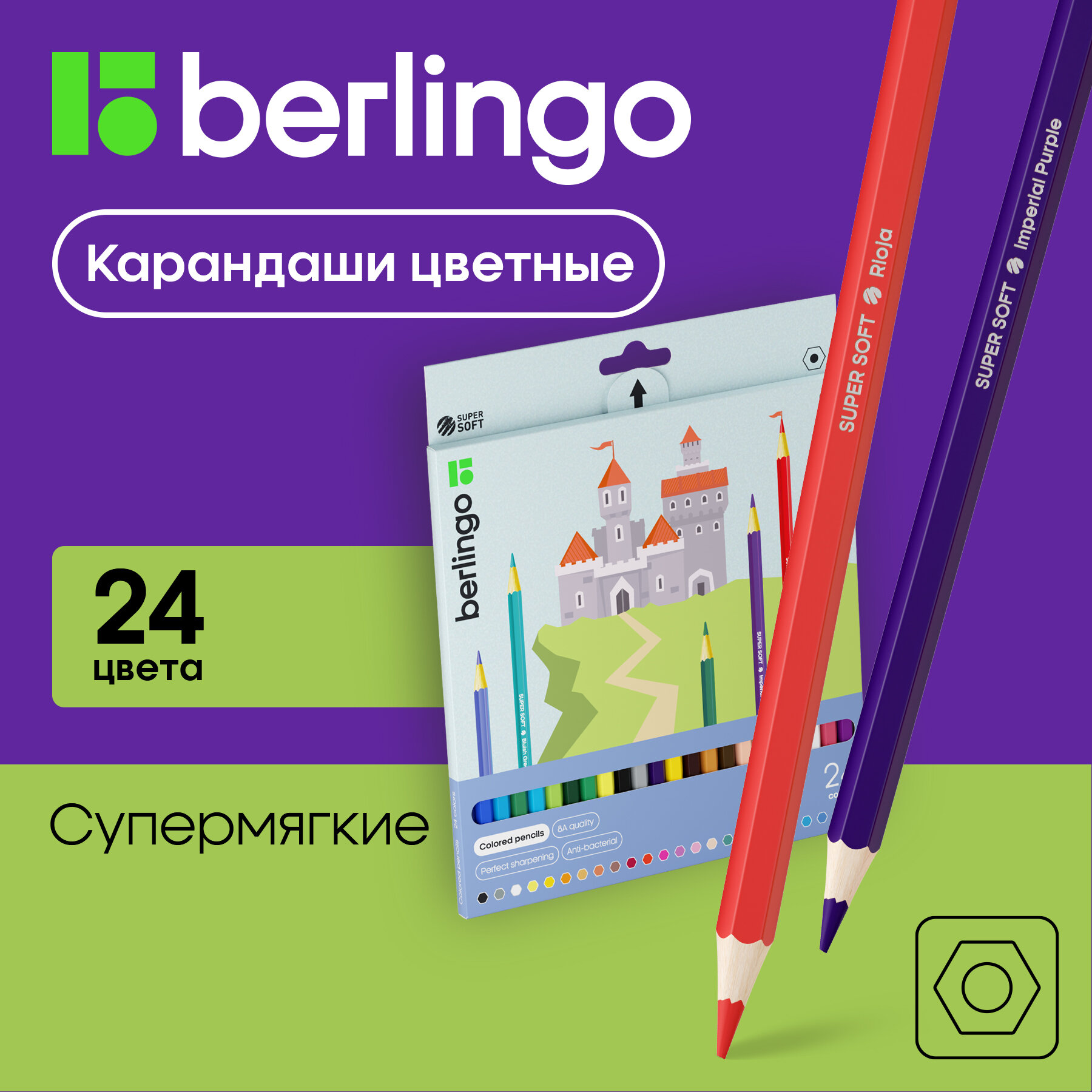 Купить Карандаши цветные Berlingo "SuperSoft. Замки", 24цв., заточен., картон, европодвес