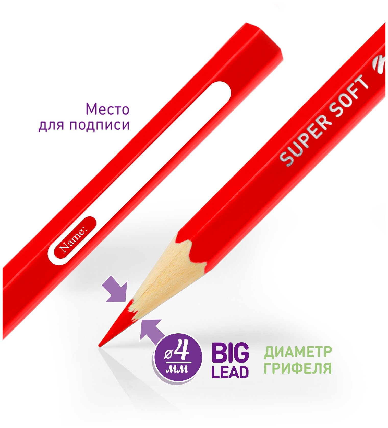 Цветные карандаши для школы 24 цвета, шестигранные / Набор цветных карандашей для рисования школьный Berlingo "SuperSoft. Замки"